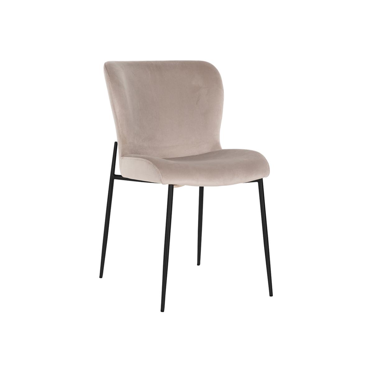 This Darby Chair by Richmond Interiors is curvaceous and smooth in style with an elegant silhouette. It has a high back which offers maximum support and a soft padded seat for a comfortable dining. View More. This Darby Chair by Richmond Interiors is curvaceous and smooth in style with an elegant silhouette. It has a high back which offers maximum support and a soft padded seat for a comfortable dining experience. The armless design means it takes up far less space and makes it the perfect choice for smaller rooms. The khaki velvet upholstery looks opulent and effortlessly elegant, and the simple black metal legs continue the minimalist and contemporary feel. The neutral shade means it will match any colour scheme or décor style. It is 85 cm tall and 49 cm wide and has a depth of 64 cm.
