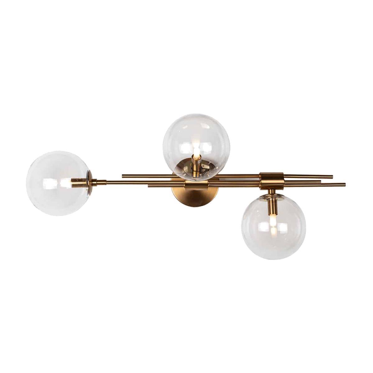 While some interiors strive for symmetry and balance in single items and room compositions, there are many designers who revel in the possibilities of the asymmetrical. The Davine wall light is a perfectly achieved example of this. The formal perfection of the three spherical light shades and the thin, smooth supporting rods is transformed into a dazzling sense of dynamic irregularity. Each component is slightly offset and angled to confound expectations. The combination of clear glass and brushed gold iron shimmers and shines, radiating style. 'Davine' is an ancient name that means 'beloved', and this is truly a piece to fall in love with. *Moot Trading Ltd is not a lender and acts only as an introducer. The credit product is provided by Klarna Bank AB (publ). Credit is only available to permanent UK residents aged 18 and over, subject to status. Terms and conditions apply. Please note that the following products are not regulated by the FCA: Pay in 30 days and Pay in 3 instalments. Read More.