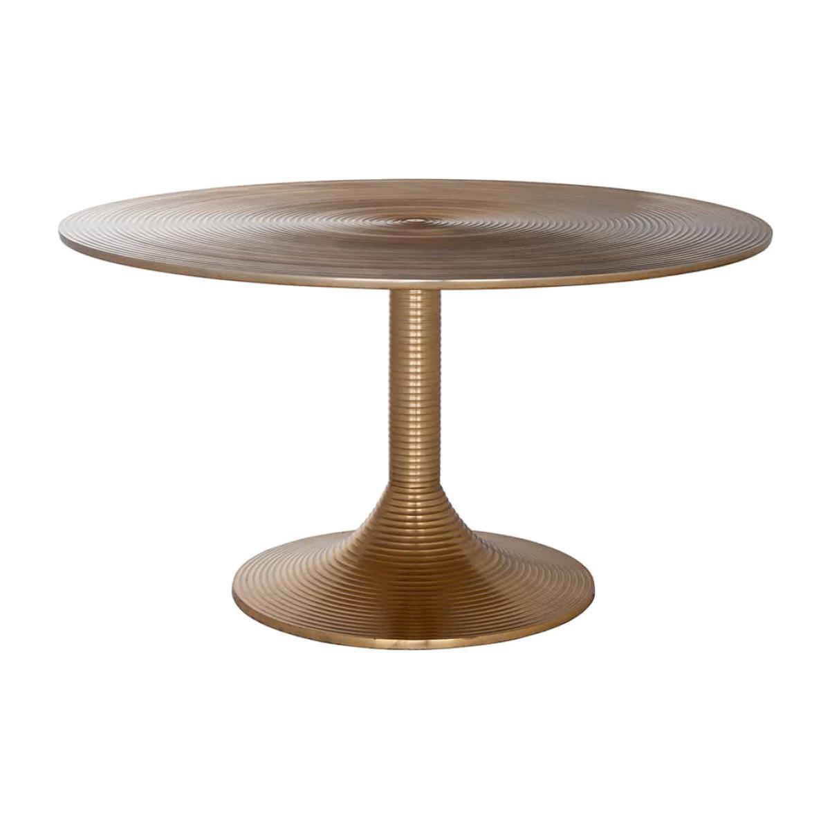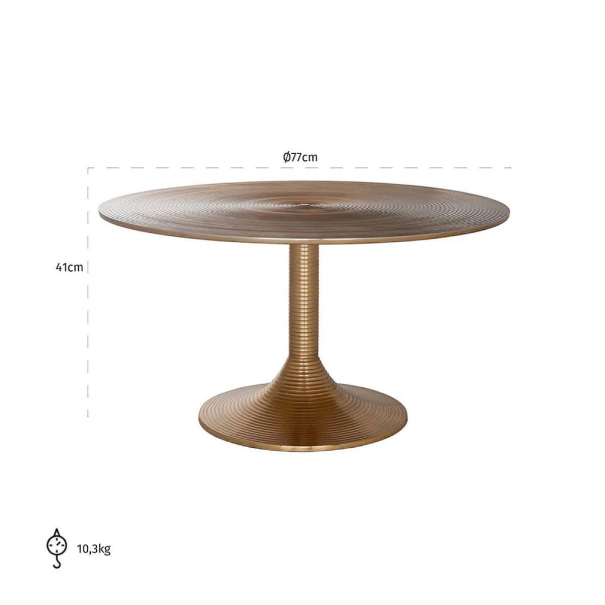 The subtly elegant Richmond Dexter gold coffee table is a tactile piece with a decidedly retro feel. Engravings adorn its curves, forming a chic and stylish structure, whilst its continuous fluid lines create an illusion of space even in smaller-sized rooms. The gold coloured aluminium complements and contrasts with a host of interior design colour schemes, whilst the 41cm height and 77cm diameter make this table the perfect place to display treasured ornaments or to provide a convenient place for drinks and nibbles in your lounge or conservatory. This coffee table is perfect teamed with Dexter or Booker side tables. *Moot Trading Ltd is not a lender and acts only as an introducer. The credit product is provided by Klarna Bank AB (publ). Credit is only available to permanent UK residents aged 18 and over, subject to status. Terms and conditions apply. Please note that the following products are not regulated by the FCA: Pay in 30 days and Pay in 3 instalments. Read More.