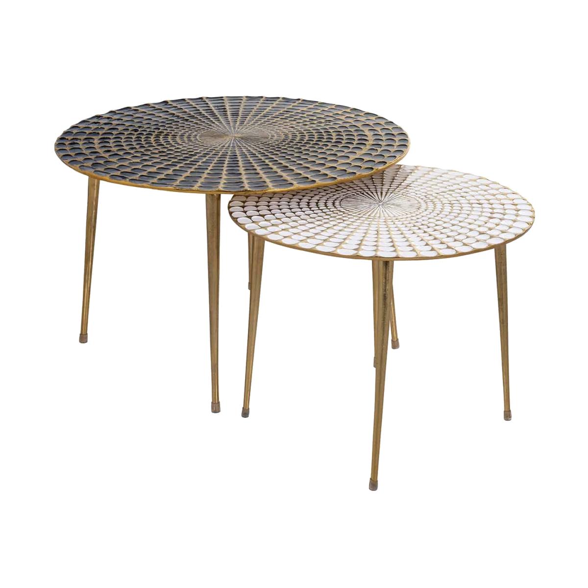 Elevate your living room to the next level with our stunning Coffee Table Esmay set of 2. Whether you are looking to complete a contemporary or industrial look in your home, our coffee table set makes a perfect addition to any living space. Boasting both style and functionality, this coffee table set is a must-have for those who value both form and function. The Coffee Table Esmay is crafted from high-quality aluminium and features a sleek, modern design that is sure to impress. Dimensions: W:70 x H:45 x D:70cm Materials: Aluminium Assembly Required:Yes Care Instructions:Wipe clean with soft damp cloth