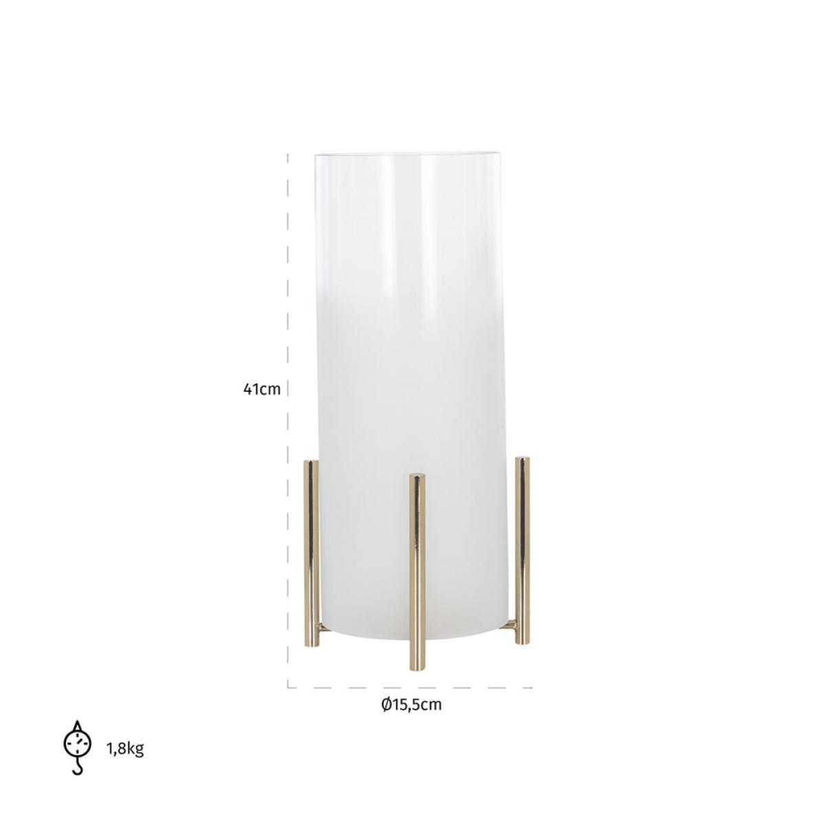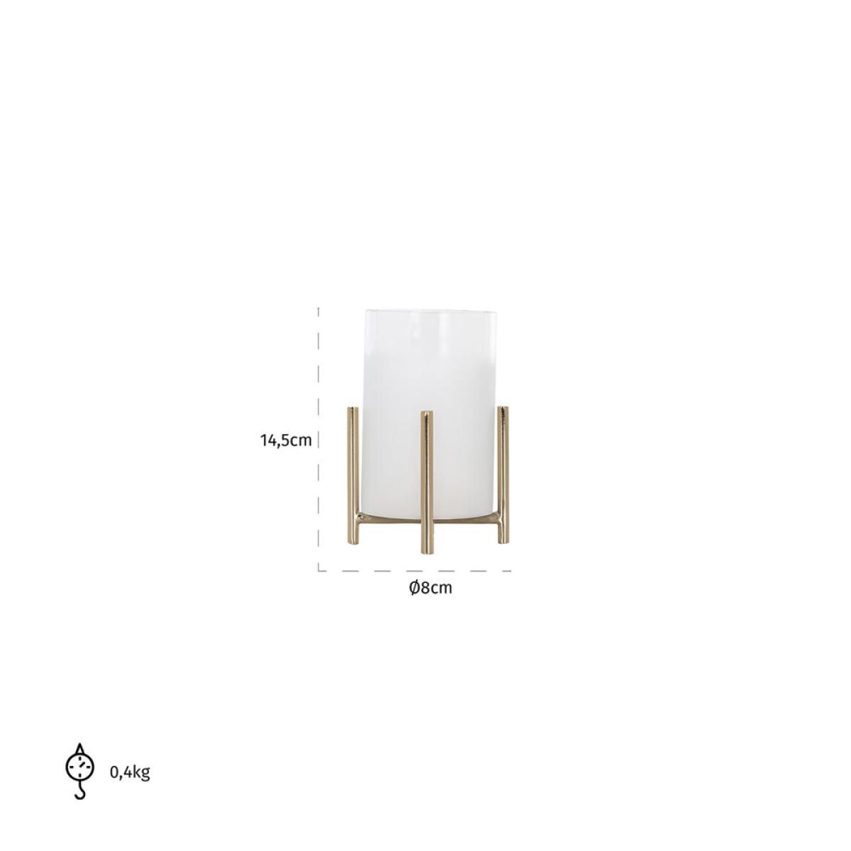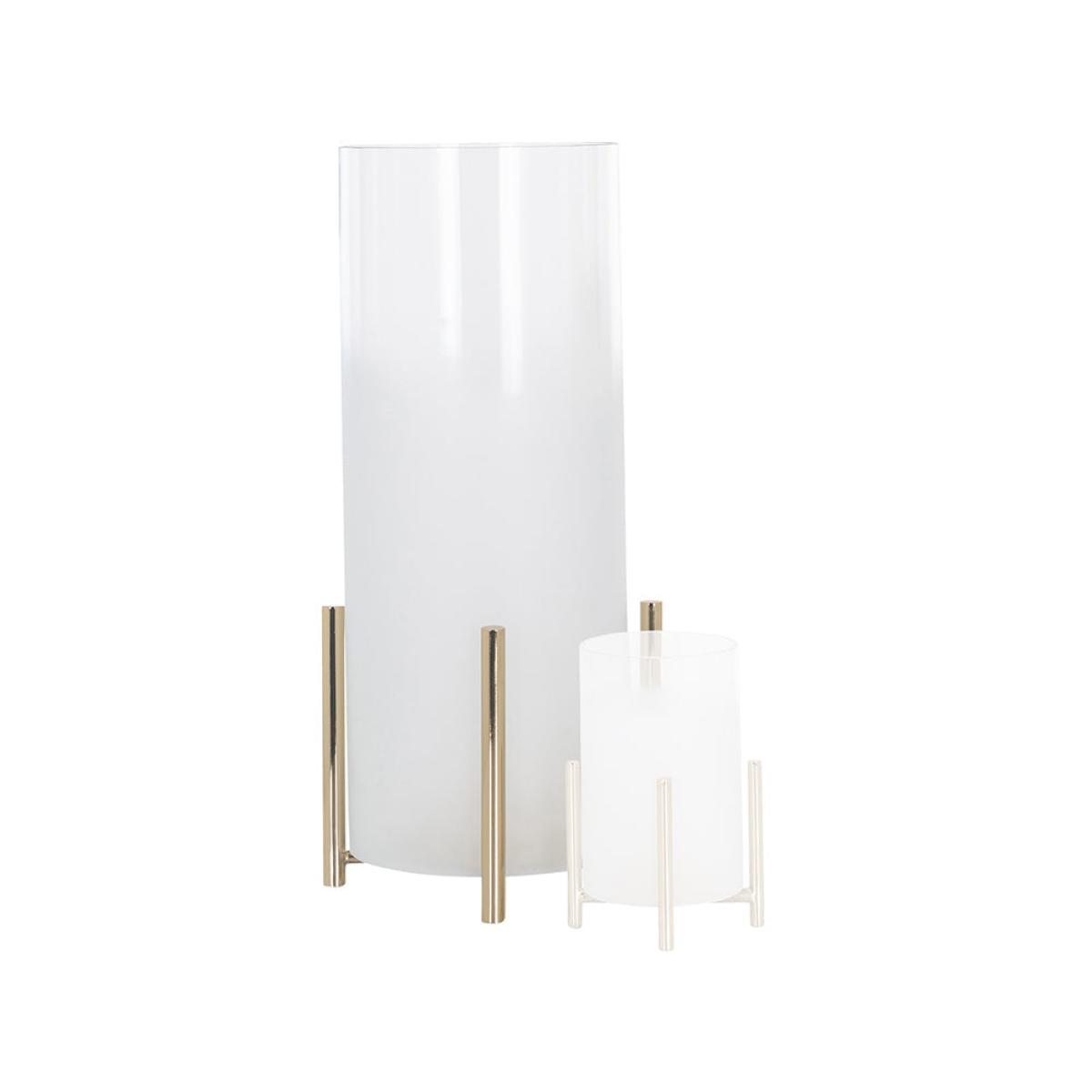 The modern, clean and crisp lines of this Eva Hurricane lamp from Richmond are a striking addition to your lighting collection. The frosted glass shade sits elegantly in the raised iron base ensuring that the Eva Hurricane can be placed either inside or outside your beautiful home. At a diminutive 14.5 x 8 x 8 cm the lamp can be placed alone or with others to add atmosphere to a cosy evening with friends or provide a warm light as you enjoy a summer’s evening after dark, beautifully illuminating your space whilst ensuring that the flame of the candle is protected Dimensions: H: 14.5 x W: 8 x D: 8 cm Materials: Glass, Iron Assembly Required: No Care Instructions:Wipe with a clean, dry cloth