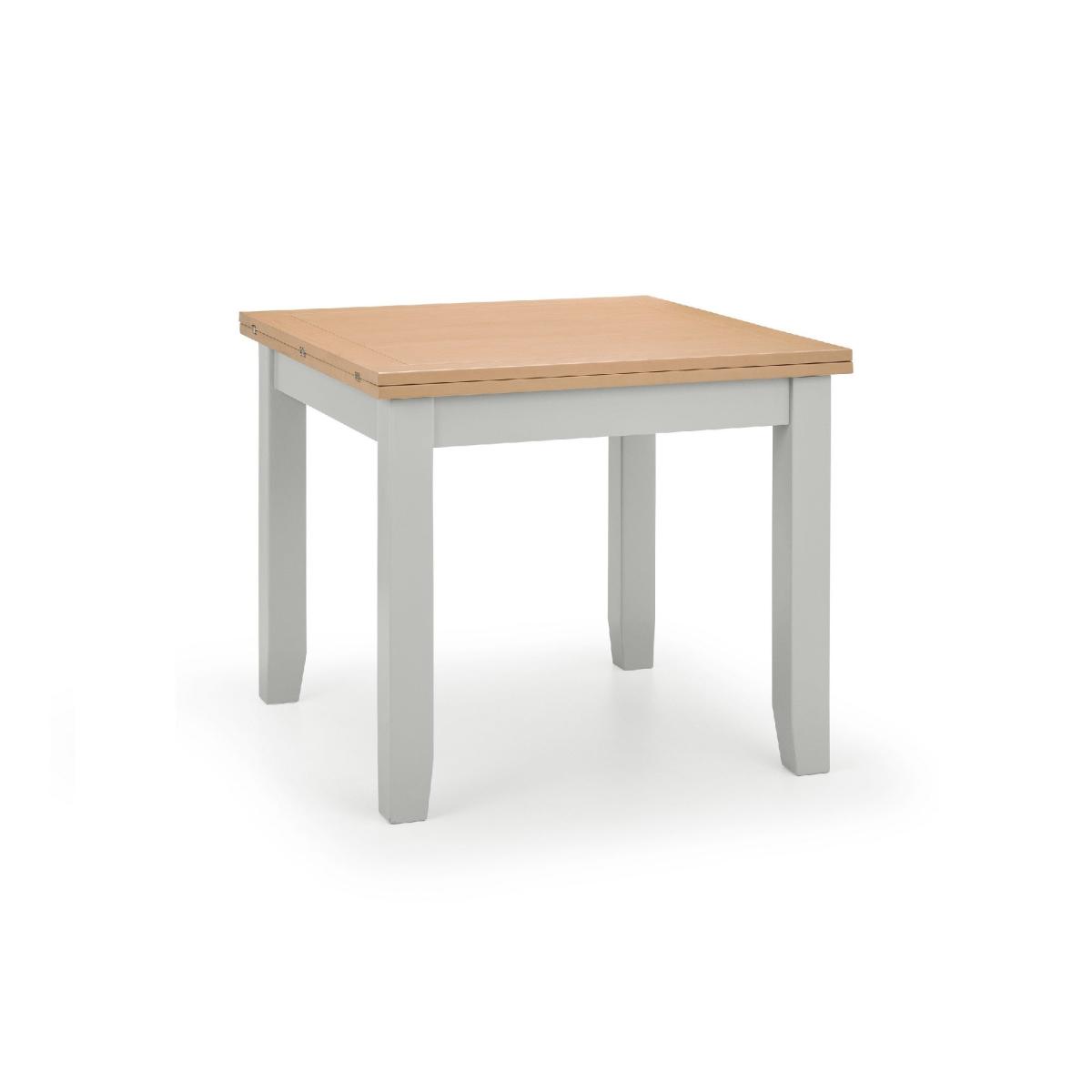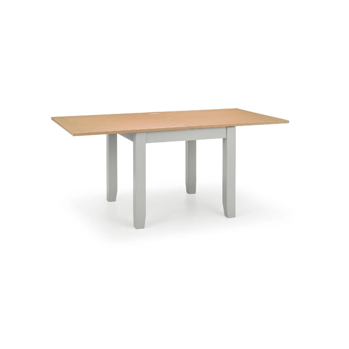 I love this set for its versatile and practical design. The flip top table is ideal for smaller dining spaces or open-plan interiors, offering flexibility to extend when needed. The grey finish provides a neutral backdrop, making it easy to style with a variety of colour schemes and decor choices. It works well in contemporary, Scandi, or even country-themed interiors, especially when paired with simple textiles or colourful accessories. For styling tips, consider adding a statement centrepiece or vibrant placemats to bring personality to the table, while the chairs’ neutral tone keeps the look fresh and cohesive. Overall, it’s a functional option with a clean aesthetic that doesn’t compromise on style.