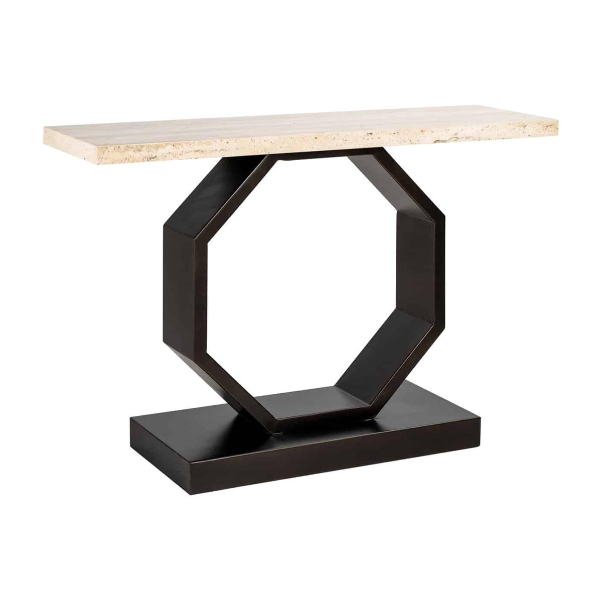 Unlock the beauty of your home with the Richmond Interiors Avalon Console Table in Bronze. Its quirky octagonal silhouette and sleek bronze exterior bring an air of sophistication and luxury to any space. Perfect for any living room, dining room, or hallway, this console table is sure to be a stylish centerpiece.