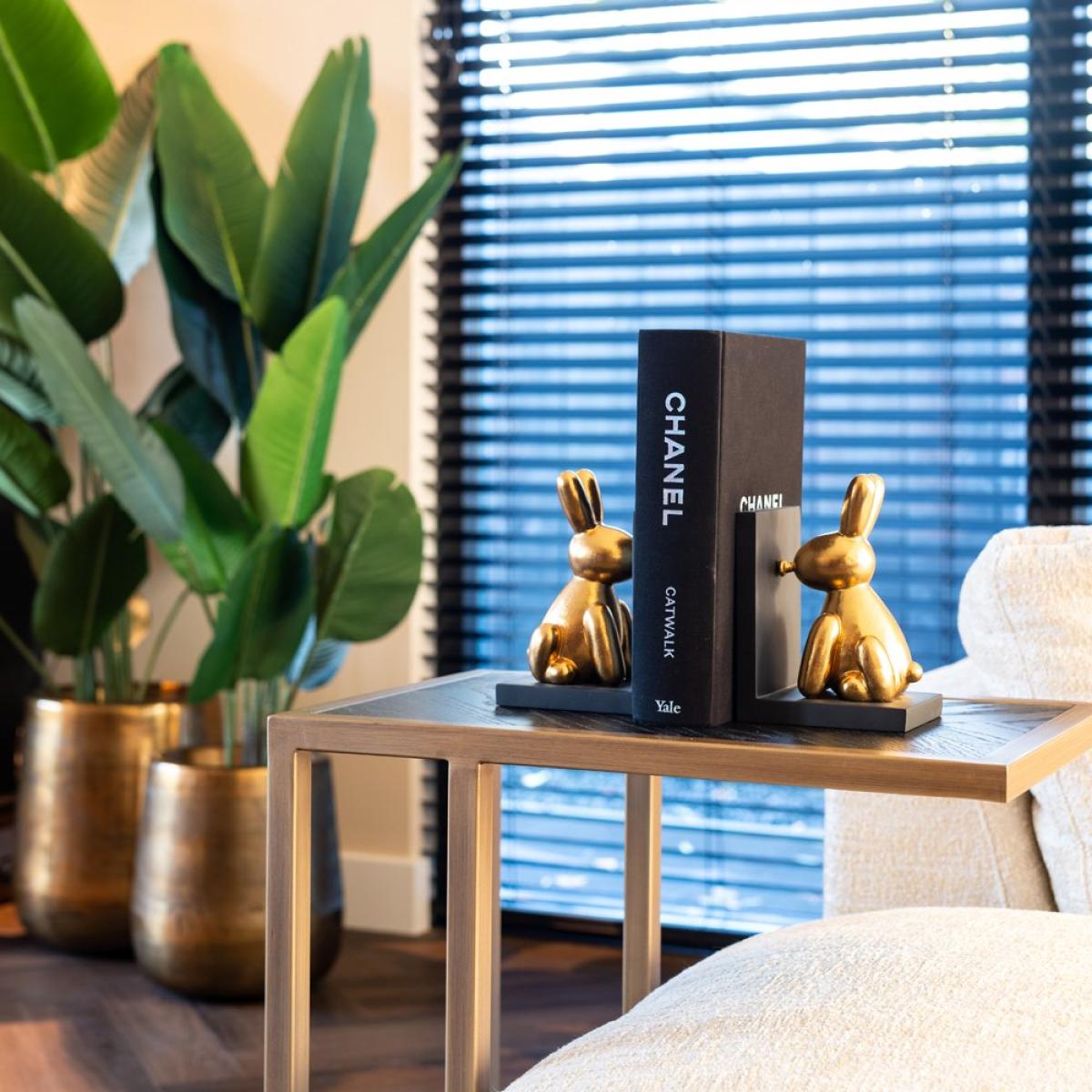 Introducing the Richmond Interiors Cony Bookends, a chic and functional addition to your home library or office space. Crafted from durable resin with a sophisticated black and gold finish, these bookends offer both style and utility. They provide sturdy support for your favorite books while adding an elegant touch to your shelves. Whether displayed on a bookcase, desk, or shelf, the Cony Bookends effortlessly blend into any interior decor style, from modern to traditional. Enhance the organization and aesthetics of your reading nook or workspace with these sleek and versatile bookends from Richmond Interiors. Bring home the Cony Bookends to elevate your literary space with a touch of sophistication and charm.