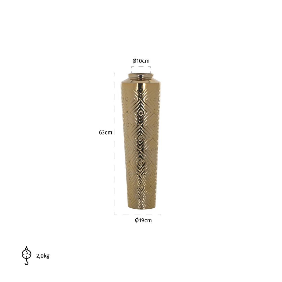 Introducing the Richmond Interiors Dana Vase in its small size, a delightful accent for your home decor. This exquisite vase, meticulously crafted from high-quality iron, exudes elegance and charm. With dimensions measuring 63cm in height and 19cm in both width and depth, it offers a perfect balance of style and versatility. The luxurious gold finish adds a touch of sophistication, making it an ideal addition to any room. Whether displayed on a mantel, shelf, or tabletop, the Richmond Interiors Dana Vase adds a touch of glamour to your living space. Enhance your interior design with this timeless piece, blending seamlessly with a variety of decor styles. With an estimated delivery time of 2-4 weeks, you'll soon have this stunning vase to elevate the ambiance of your home.
