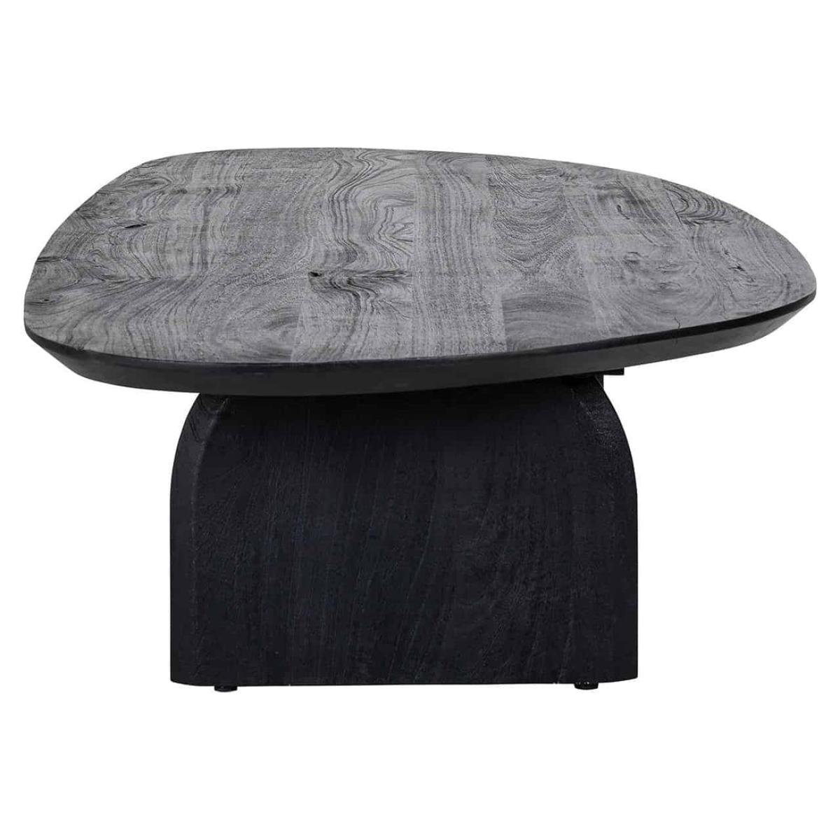 I love this black coffee table for its modern, minimalist appeal and versatile design. Its dark finish makes it an excellent focal point in contemporary or industrial-style interiors, while also complementing more neutral or monochrome schemes. The table’s oversized, organic shape adds visual interest and provides ample space for styling or entertaining. For practical styling tips, consider layering with a stack of books, candles, or a small tray to keep accessories organised. It works well in open-plan living areas or paired with bold sofas, offering a chic, functional centrepiece that can adapt to both casual and formal settings.