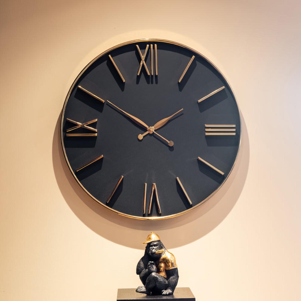 Introducing the Richmond Interiors Lyem Clock, a stunning addition to your indoor decor that seamlessly combines functionality with modern elegance. With its sleek design and dimensions of 76x76x5.5cm, this clock serves as a striking focal point in any room. Crafted from high-quality MDF and stainless steel, it boasts durability and longevity while exuding sophistication. The black and gold color scheme adds a touch of luxury, making it a perfect fit for contemporary interiors. Whether displayed in the living room, kitchen, or office, the Lyem Clock not only keeps you on time but also elevates the aesthetic appeal of your space. Its bold design and eye-catching details make it a conversation starter and a stylish accent piece. Bring home the Lyem Clock to add a touch of modern flair and functionality to your home decor.