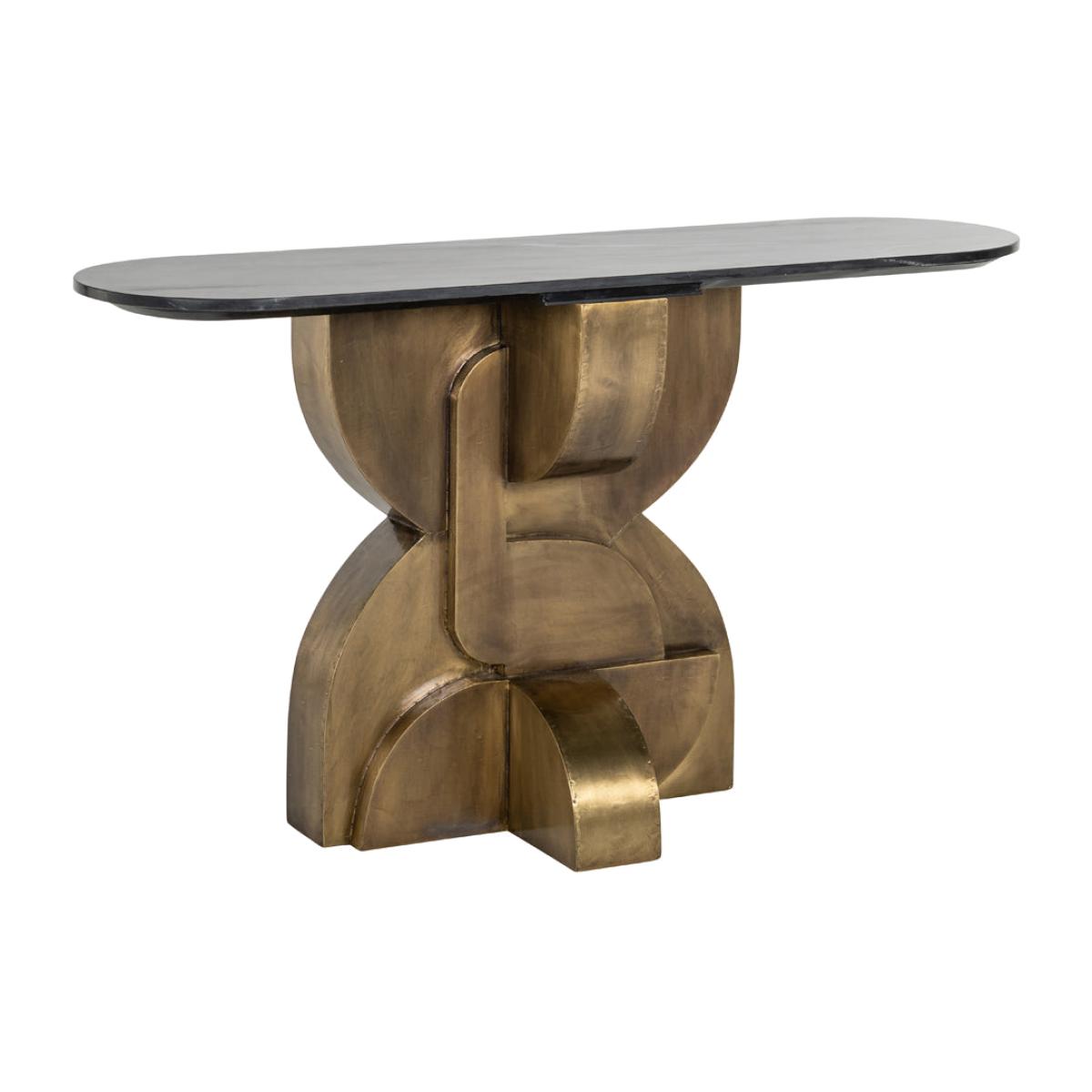 Introducing the Richmond Interiors Maddox Console Table, a luxurious addition to your interior decor. Crafted with meticulous attention to detail, this console table features a captivating black and gold marble top that exudes opulence and sophistication. The combination of marble, MDF, and brass accents adds to its elegance, while the sleek design complements any modern or contemporary setting. Whether placed in your entryway, living room, or hallway, the Maddox Console Table is sure to elevate the aesthetic of your home. Make a statement in your home with the Richmond Interiors Maddox Console Table and indulge in luxury living.