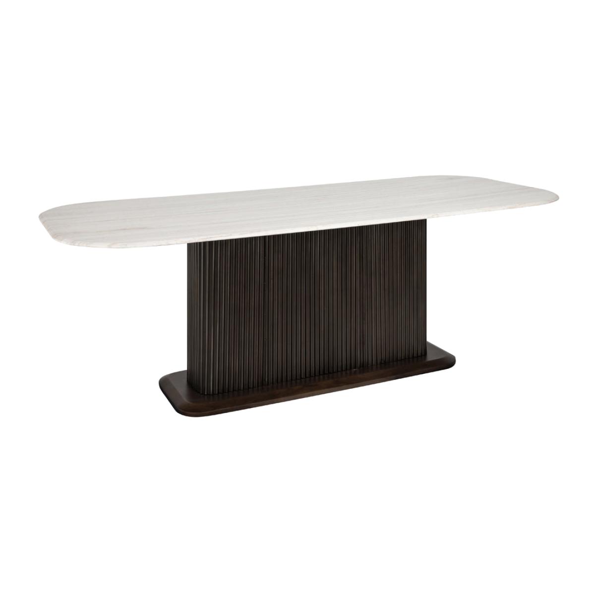 Introducing the Richmond Interiors Mayfield 230cm Dining Table, a stunning centerpiece for your dining room. Crafted with precision and style, this dining table features a blend of dark wood and white accents, adding sophistication to any space. The tabletop, made from exquisite Morchana marble, exudes luxury and elegance, while sturdy iron and wood legs provide stability and durability. Whether placed in a modern dining area or a traditional setting, the Mayfield Dining Table adds a touch of refinement to any decor. Elevate your dining experience with the Richmond Interiors Mayfield Dining Table and create unforgettable moments with your loved ones.