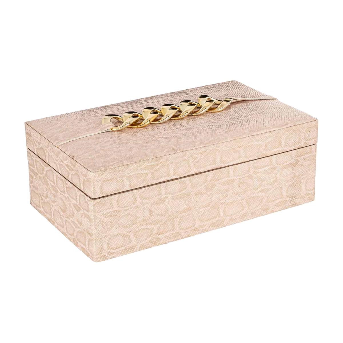 The Richmond Interiors Noell Storage Box adds a touch of luxury to your home. This beautiful box is crafted in a rich pink hue and is perfect for storing books, magazines, and other items. Its sophisticated design makes it a tasteful addition to any interior.