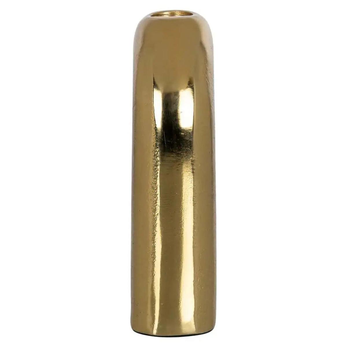 I love this little gold candle holder for its sleek, minimalist design that adds a touch of modern elegance to any space. It works particularly well in contemporary or industrial interiors, but also complements more eclectic styles when layered with textured accessories. Practical styling tips include grouping it with a selection of larger candle holders for a layered arrangement or placing it on aconsole table or shelf alongside books and decorative objects for a chic vignette. Its small size makes it versatile for table settings or cosy corners, and its warm gold finish brings a subtle luxe feel without overpowering the overall decor.