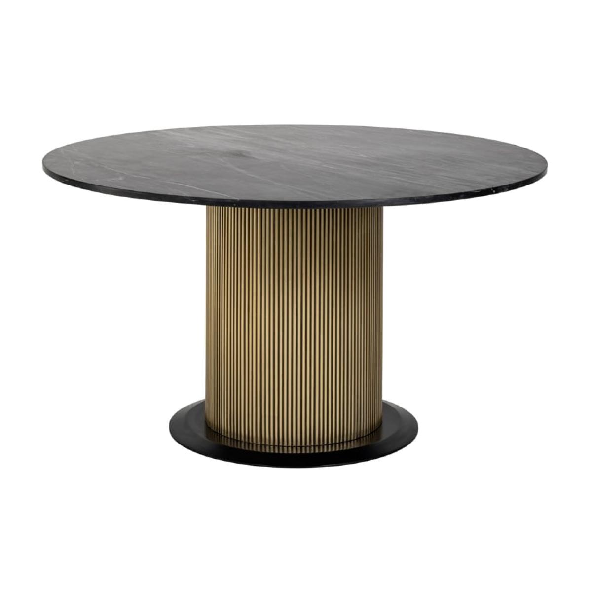This round dining table is a real statement piece, combining a sleek marble top with a striking, gold-toned base. I love how it effortlessly elevates both contemporary and more eclectic interiors. It works particularly well in open-plan spaces or homes with a touch of glamour, but can also add a luxe feel to more understated, minimalist schemes. For styling, consider pairing it with modern or retro-inspired chairs-think velvet or leather-to complement the rich textures. Keep accessories minimal on the table itself to showcase its eye-catching design, and add some colourful or textured placemats for practical pop and visual interest during everyday use. Overall, it's a versatile yet bold choice that can anchor a stylish dining area.