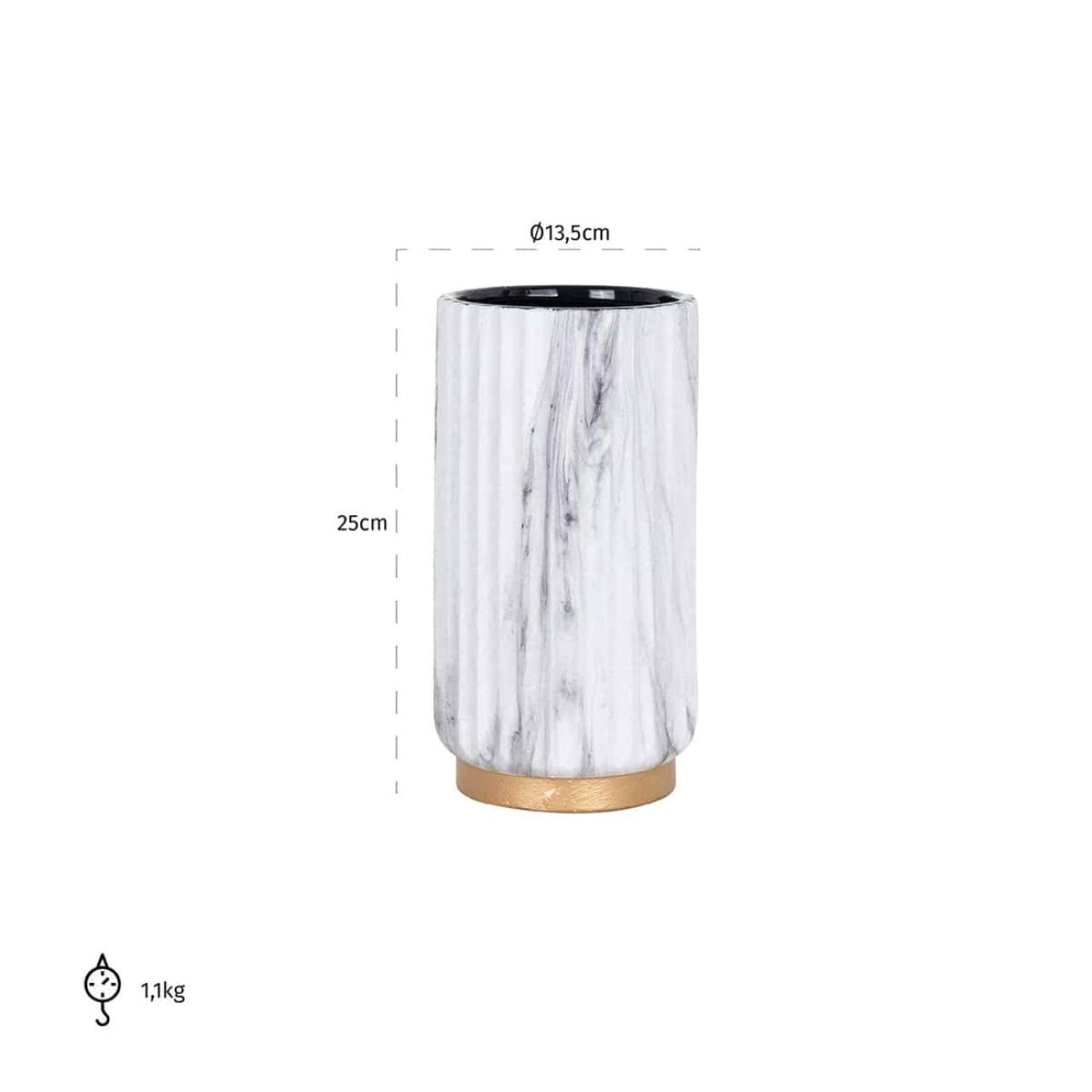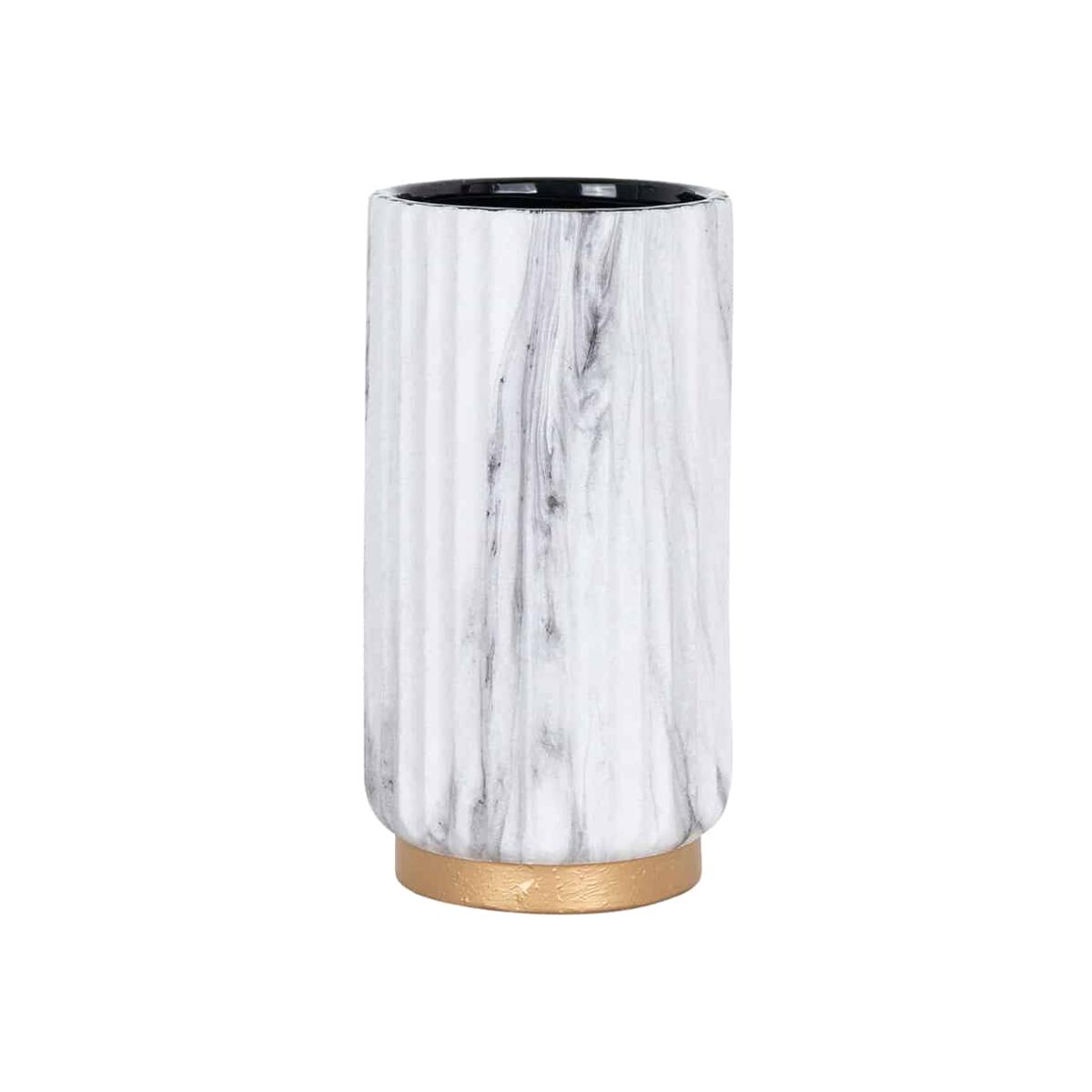 I love this vase for its clean, modern look with the marble finish and subtle gold base. It works exceptionally well in contemporary or minimalist interiors, adding a touch of sophistication without overwhelming the space. Practical styling tips include pairing it with fresh, single-stem blooms or simple greenery for understated elegance, or grouping it with other textures like metallics or ceramics for a layered effect. Its size makes it versatile-perfect as a focal point on a sideboard or as part of a centrepiece on a dining table. Keep the surrounding decor sleek and uncluttered to let this piece truly stand out.