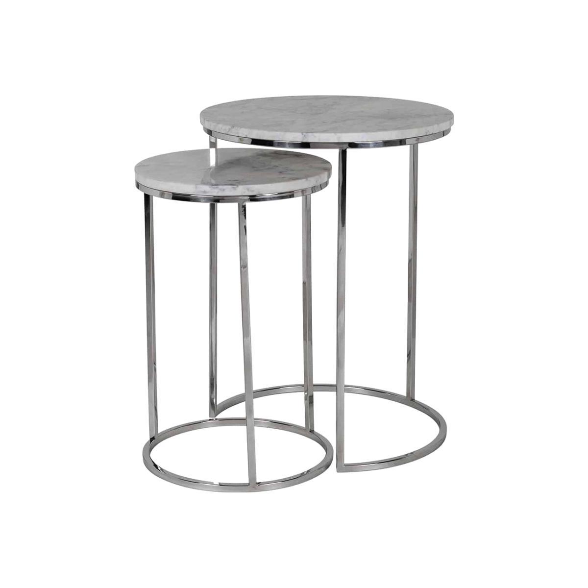 Add a touch of modern elegance to your home with this set of two marble top, side tables. The Richmond Lacey Side Table comes as a set of two beautiful, round side tables in different sizes. The mixture of marble and silver stells creates a classic design that will look perfect in your living area, study, bedroom, or any room in your home. Standing at 57cm high and 45cm wide, and 50cm high and 34cm wide, these tables will be eye-catching with a vase, house plant, lamp, or candle, next to your sofa, bed, or in opposite corners in your room. *Moot Trading Ltd is not a lender and acts only as an introducer. The credit product is provided by Klarna Bank AB (publ). Credit is only available to permanent UK residents aged 18 and over, subject to status. Terms and conditions apply. Please note that the following products are not regulated by the FCA: Pay in 30 days and Pay in 3 instalments. Read More.