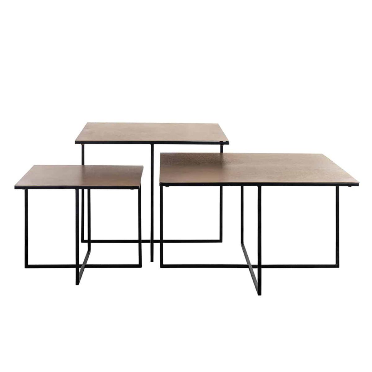 This striking set of 3 Richmond Lio coffee tables will bring simplicity and style into your home. The sleek, sturdy frame negates the need for boxy, bulky sides so that light and space can pass thr. View More. This striking set of 3 Richmond Lio coffee tables will bring simplicity and style into your home. The sleek, sturdy frame negates the need for boxy, bulky sides so that light and space can pass through the unit. The super chic golden table top is luxurious and durable in equal measure. This set of three can be nestled together harmoniously to save space or split up and used as three separate side tables. A convenient and highly useful addition to a bed site, hallway or next to a sofa, this wonderful set of tables are as functional as they are stylish.