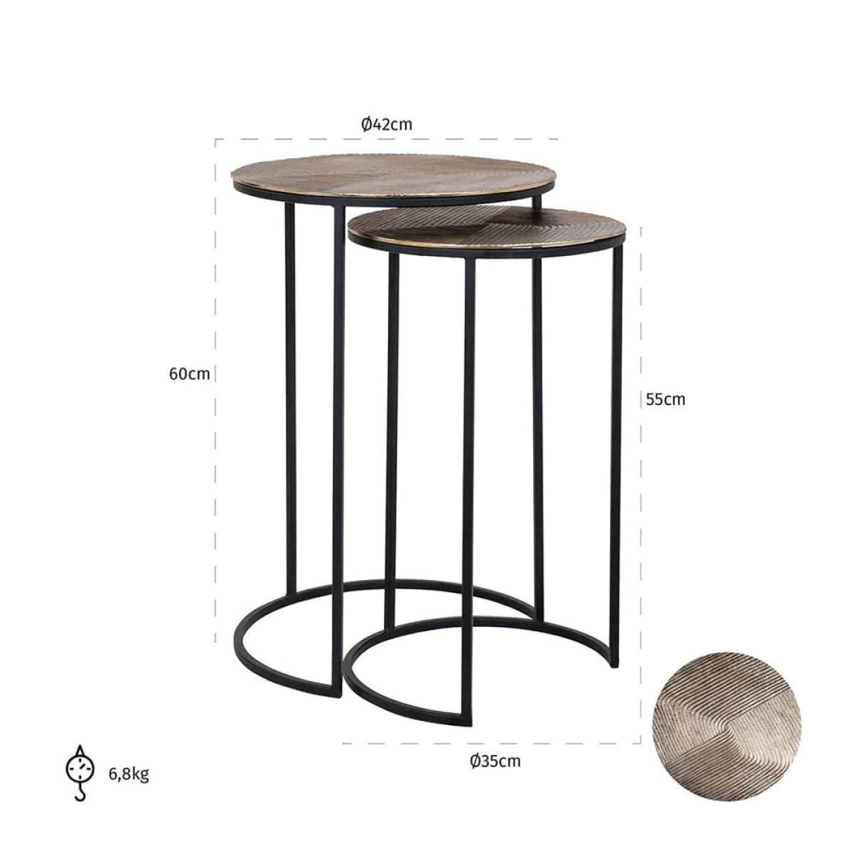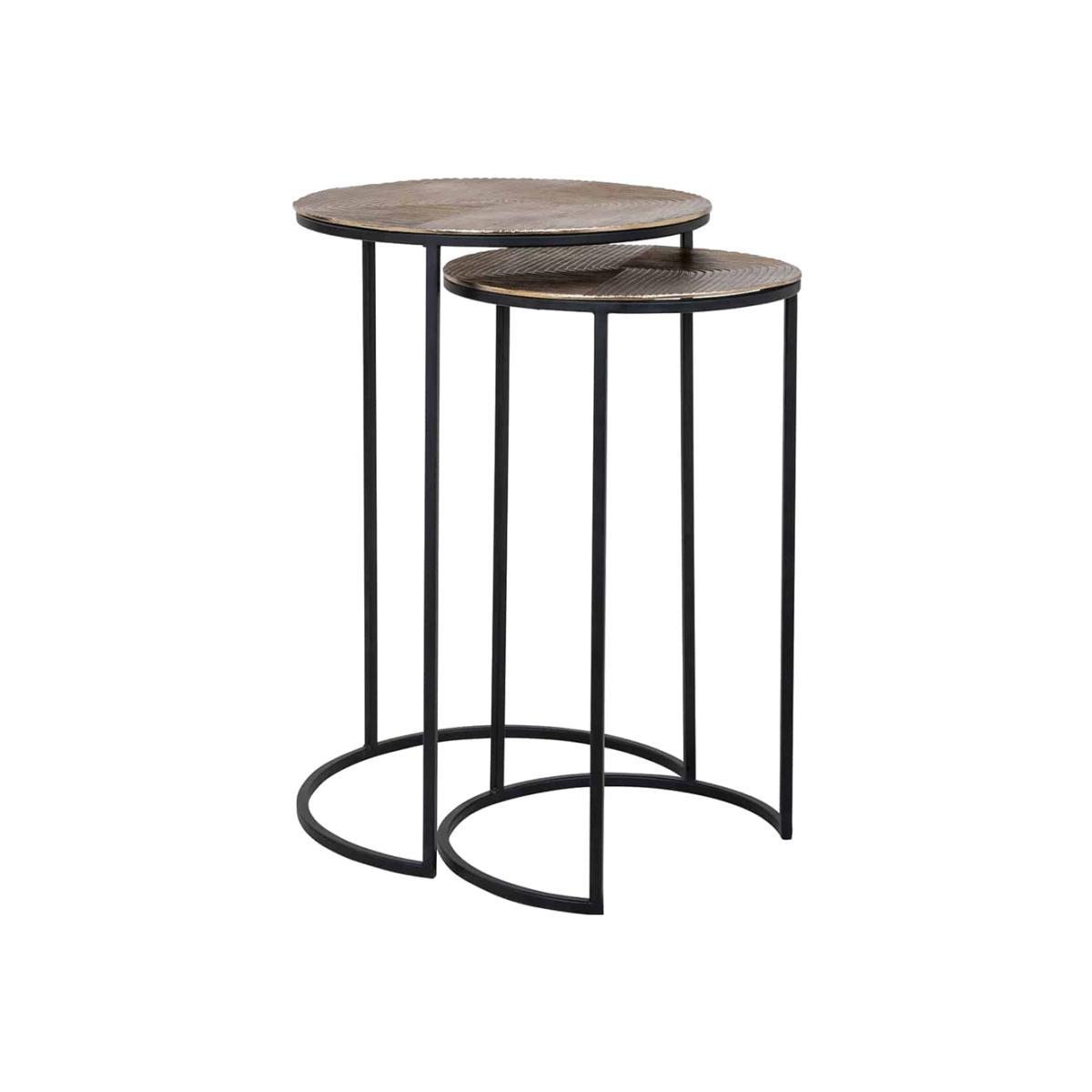 This set of two tables features gold-coloured aluminium table tops that rest on iron frames, which consist of two slender legs leading down to a crescent-shaped base. This adds an elegant touch to this lovely nest of tables. They can be placed together in any living space or separated to create a theme around the room or throughout the house. They are handy for your drinks and nibbles, both when hosting a party or enjoying a quiet night in. These tables are black and gold in colour, so will blend in well with any other colour scheme while adding a touch of modernity. *Moot Trading Ltd is not a lender and acts only as an introducer. The credit product is provided by Klarna Bank AB (publ). Credit is only available to permanent UK residents aged 18 and over, subject to status. Terms and conditions apply. Please note that the following products are not regulated by the FCA: Pay in 30 days and Pay in 3 instalments. Read More.