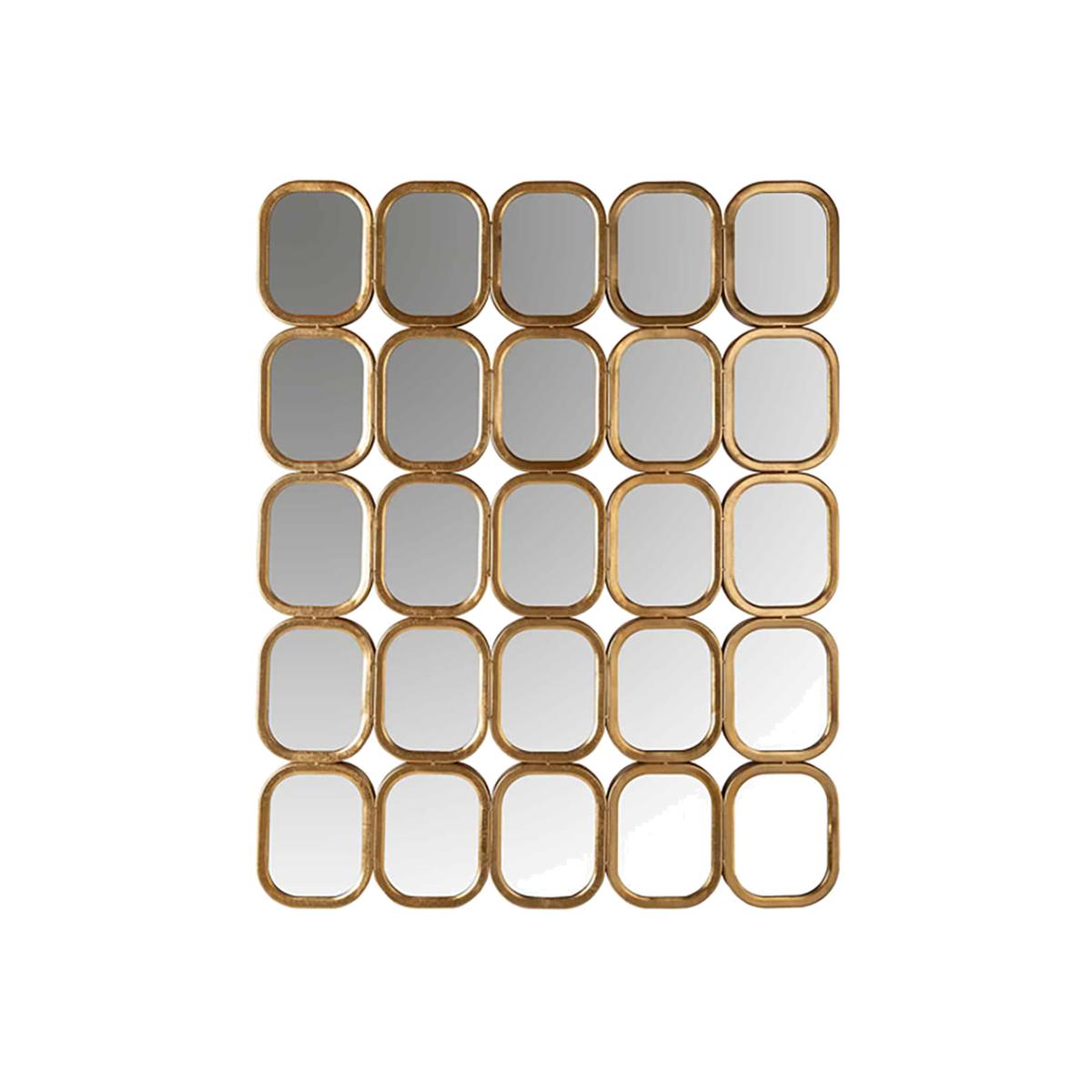 Retro chic is easily achieved with the utterly divine Richmond Marila wall mirror in gold. This large mirror will certainly make a statement, wherever you wish to place it in your home. The eye-catching pattern of regular rectangles with softened edges screams Swinging Sixties. The whole effect is given a luxurious feel with its golden tones, making the Richmond Marila wall mirror the perfect addition to your interior. Pair with similar tones for a more decadent effect or go all out psychedelic with a bright colour palette, tie-dye and neons. Dimensions:Height: 99cm x Width: 79.5cm x Depth: 4. 5cm. Weight: 13.25kg Dimensions: H: 99 x W: 79.5 x D: 4. 5 cm. Weight: 13.25kg Materials: Iron, MDF, Mirror Assembly Required: No