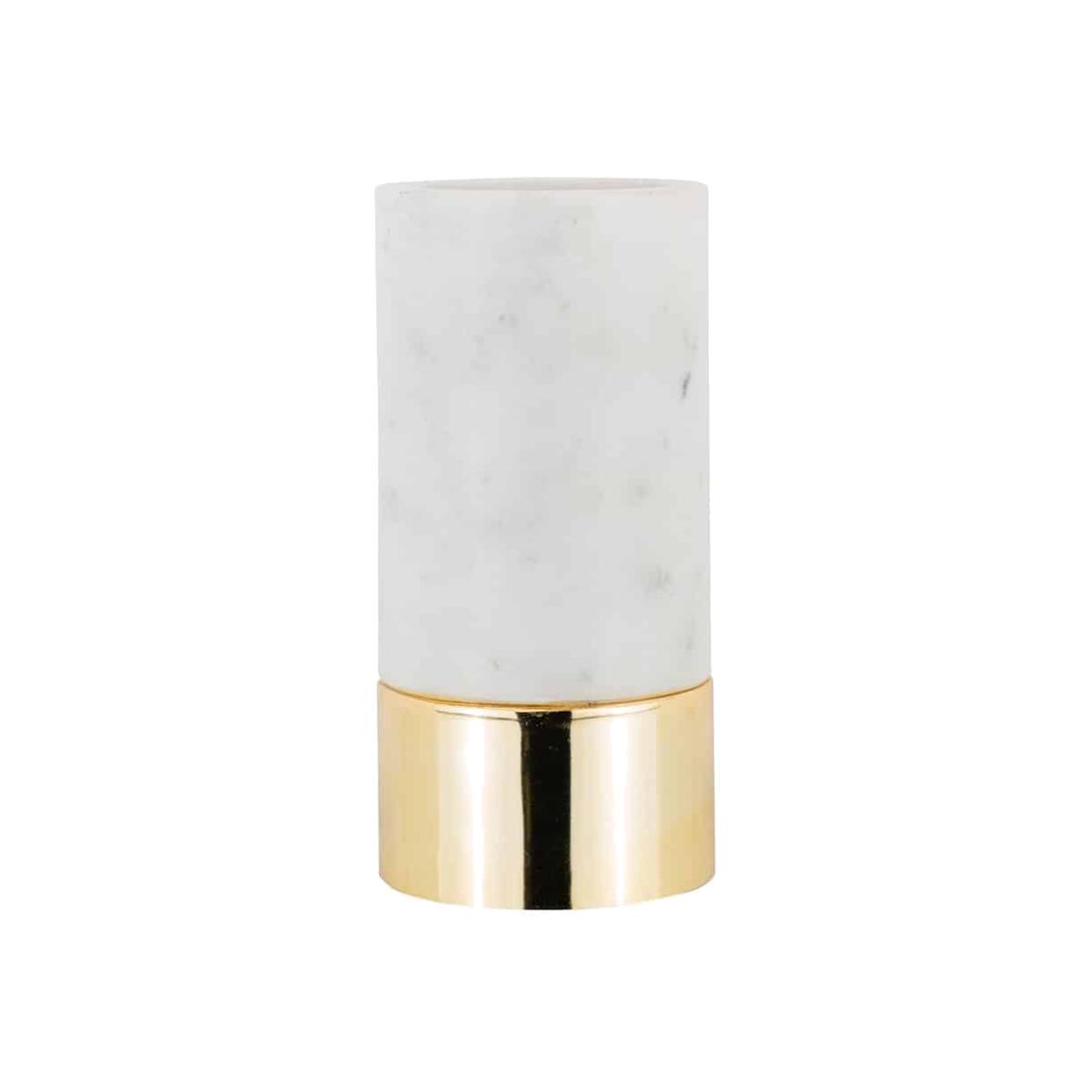 Candle Holder Morton Of Marble Small (Gold) Candlestick Morton made of marble small comes in a set of two. The combination of marble and steel creates an elegant appearance. Nice to combine with Candlestick Morley of marble large. Dimensions: W:9 x H:18.5 x D:9cm Materials: Marble, Stainless Steel Assembly Required: No Care Instructions:Wipe clean with soft damp cloth