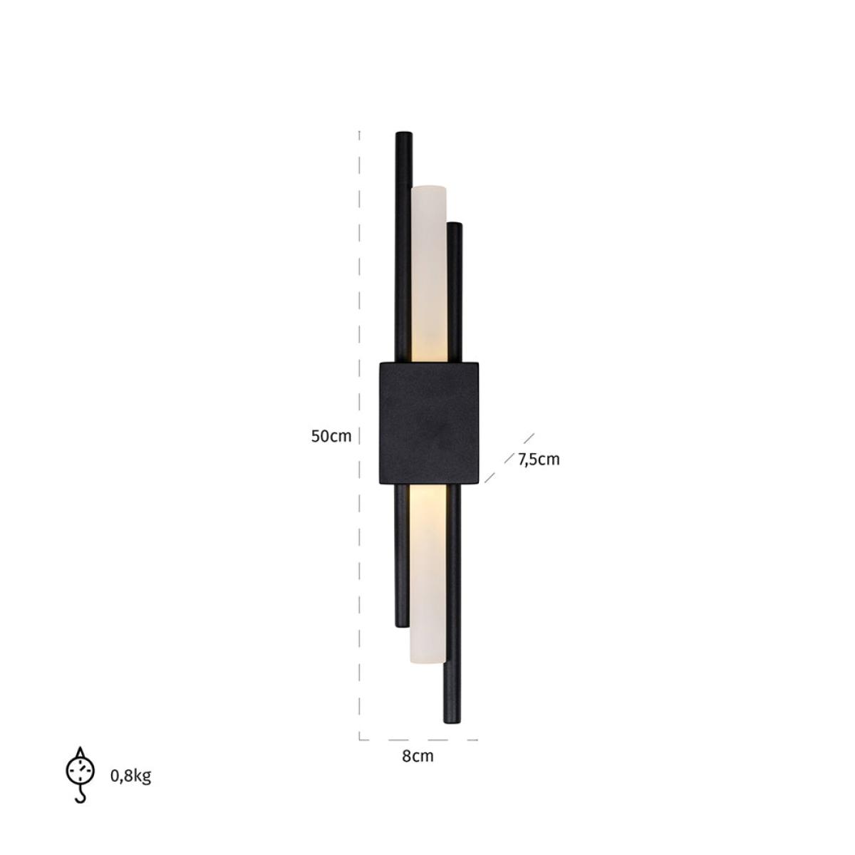 This subtle and understated wall light has a slightly industrial feel, making it very well suited to modern properties with a monochrome design preference. It is ideally suited to homes with low ceilings and those where contemporary features are welcomed. The Richmond Mylas black wall lamp consists of two black metal tubes, separated by an acrylic tube which covers the bulb, all of which are joined together by a square black metal plate. The tubes are stepped to create an eye-catching visual effect and the overall height of the light is 50cm. The wall light measures 8cm wide and is 7.5cm deep. Dimensions: H: 50 x W: 8 x D: 7.5 cm Materials: Acrylic, Metal Assembly Required: No Care Instructions:Wipe with a clean, dry cloth Bulb Type:LED 5. W, Dimmable - included