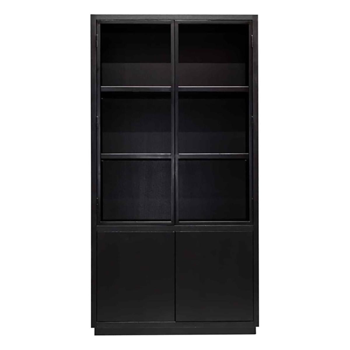 This chic Oakura cupboard in black oak from the Richmond collection adds style and functionality to your home. At 230cms high, it offers lots of storage space with six cubes to store or display your things, finished with two glass doors. Below the cubes are two cupboards with flush doors, perfect for keeping your things tidily stored away. This is a versatile cupboard, measuring 120cms wide and 45cms deep, so it does not intrude into the room, yet offers lots of storage capacity. You could use this in the lounge, study or even a playroom to keep all the toys and games nice and tidy. Dimensions: H: 230 x W: 120 x D: 45 cm. Weight: 100kg Materials: Oak veneer, Safety glass, IronNotes: . Cabinet with LED light Assembly Required: No