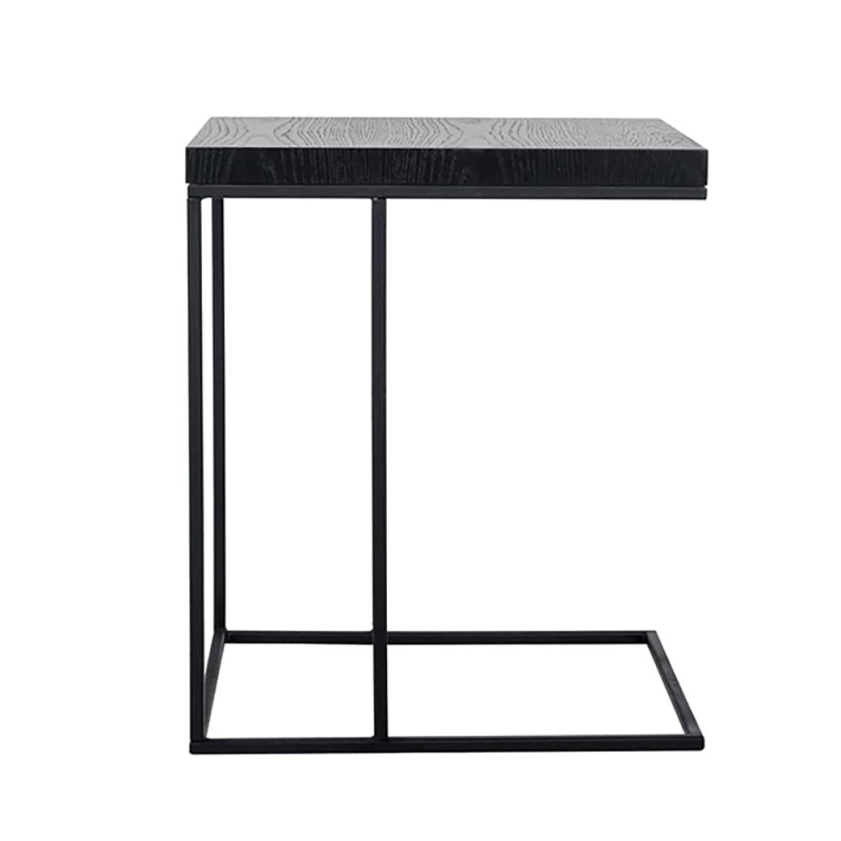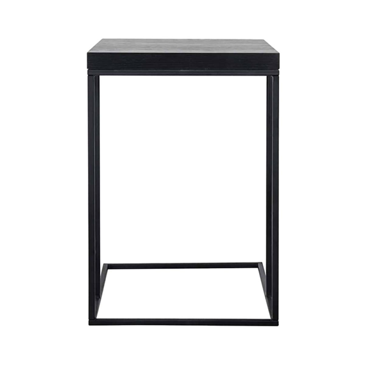 This simple table is made of oak veneer and features an iron frame, slender legs, and a square base. This is the perfect laptop table for those days when you are working from home. It is also a great place to rest drinks, snacks or your favourite book. This table is black in colour, which makes it neutral enough to fit into any surroundings while maintaining an air of modernity. This lovely table is sold separately but can be twinned to provide the perfect symmetry in your home. Its dimensions are H: 65 x W: 55 x D: 45 cm. Dimensions: H: 65 x W: 55 x D: 45 cm. Weight: 25kg. Material:Oak veneer Assembly Required: No