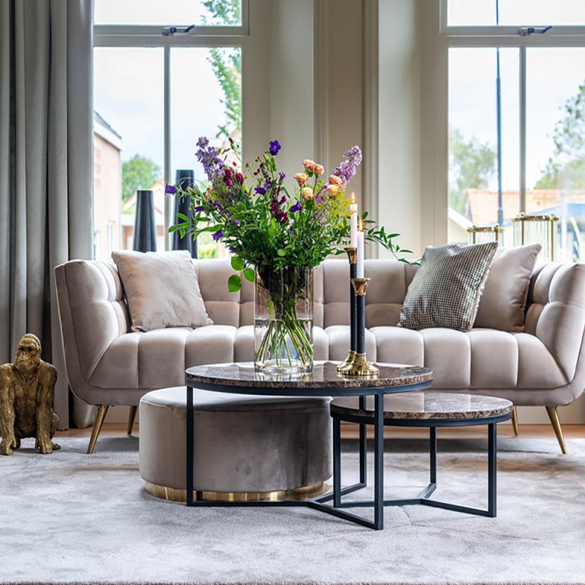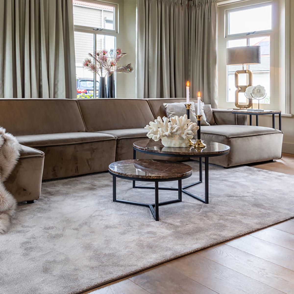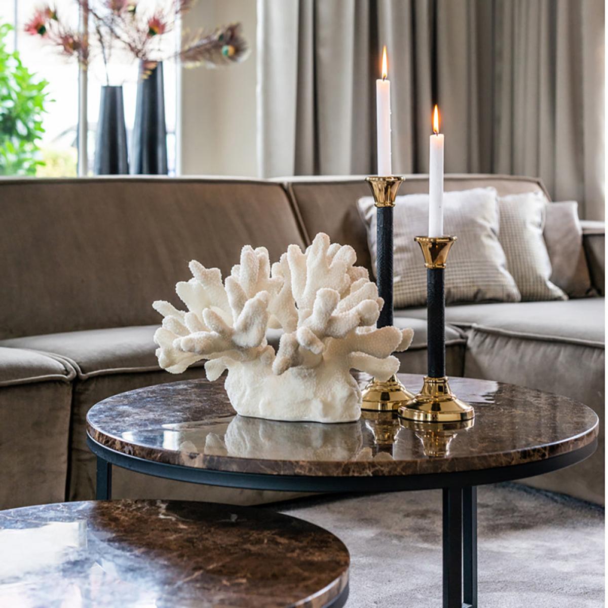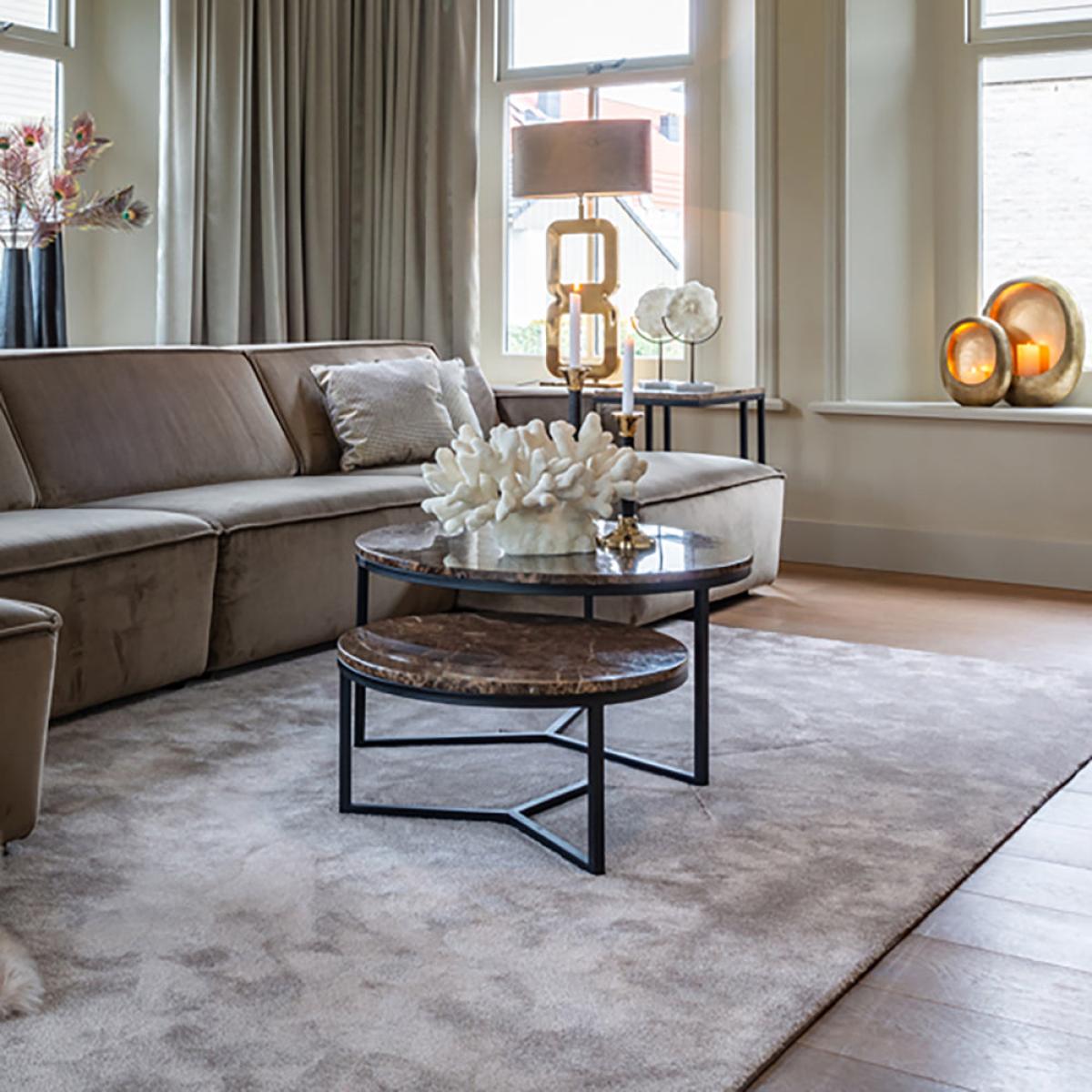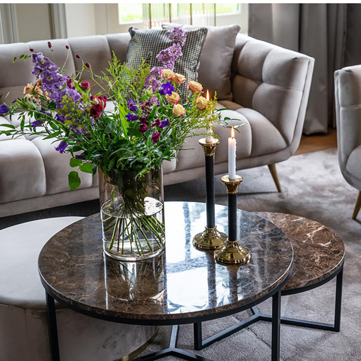 Add a touch of luxury to your home, when you place this round, brown marble coffee table in your living area. The Richmond Orion Brown Coffee Table comes in two different sizes to best suit your sp. View More. Add a touch of luxury to your home, when you place this round, brown marble coffee table in your living area. The Richmond Orion Brown Coffee Table comes in two different sizes to best suit your space. The design of this beautiful coffee table on its metal legs has a gorgeous brown marble tabletop made from Marble Emparador, which will work well in an elegant style living area, study, foyer, or conservatory. Standing at 30cm high and 60cm wide, or 40cm high and 80cm wide, this is the perfect centrepiece. Add a vase with flowers, candles, and coasters to enjoy your space. This product is made from marble which is a natural stone. The beauty of natural materials is that they have an authentic and unique finish which may result in slight variation in the vein, pattern and colour from the image shown.