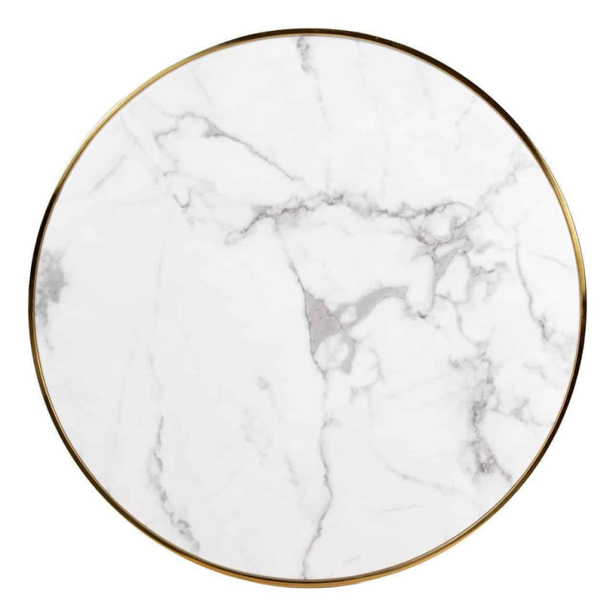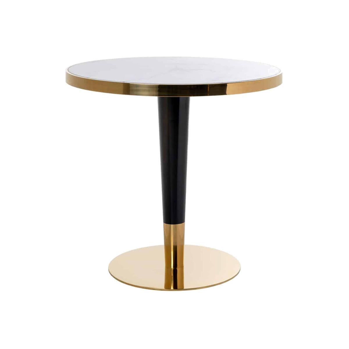 Smart and opulent, the Richmond Osteria round dining table will bring a touch of decadent elegance to any room. Its smooth, shining golden accents and base add a note of timeless luxe to this piece. View More. Smart and opulent, the Richmond Osteria round dining table will bring a touch of decadent elegance to any room. Its smooth, shining golden accents and base add a note of timeless luxe to this piece, which is both luxurious and suitable for daily use. Combining stainless steel, iron and sumptuous faux marble, this is an investment piece that is also highly useful as a dining table or as a place for friends and family to gather when entertaining. Glamorous yet sturdy, this table will contribute style to your home for many years to come and can be wiped clean with a cloth.