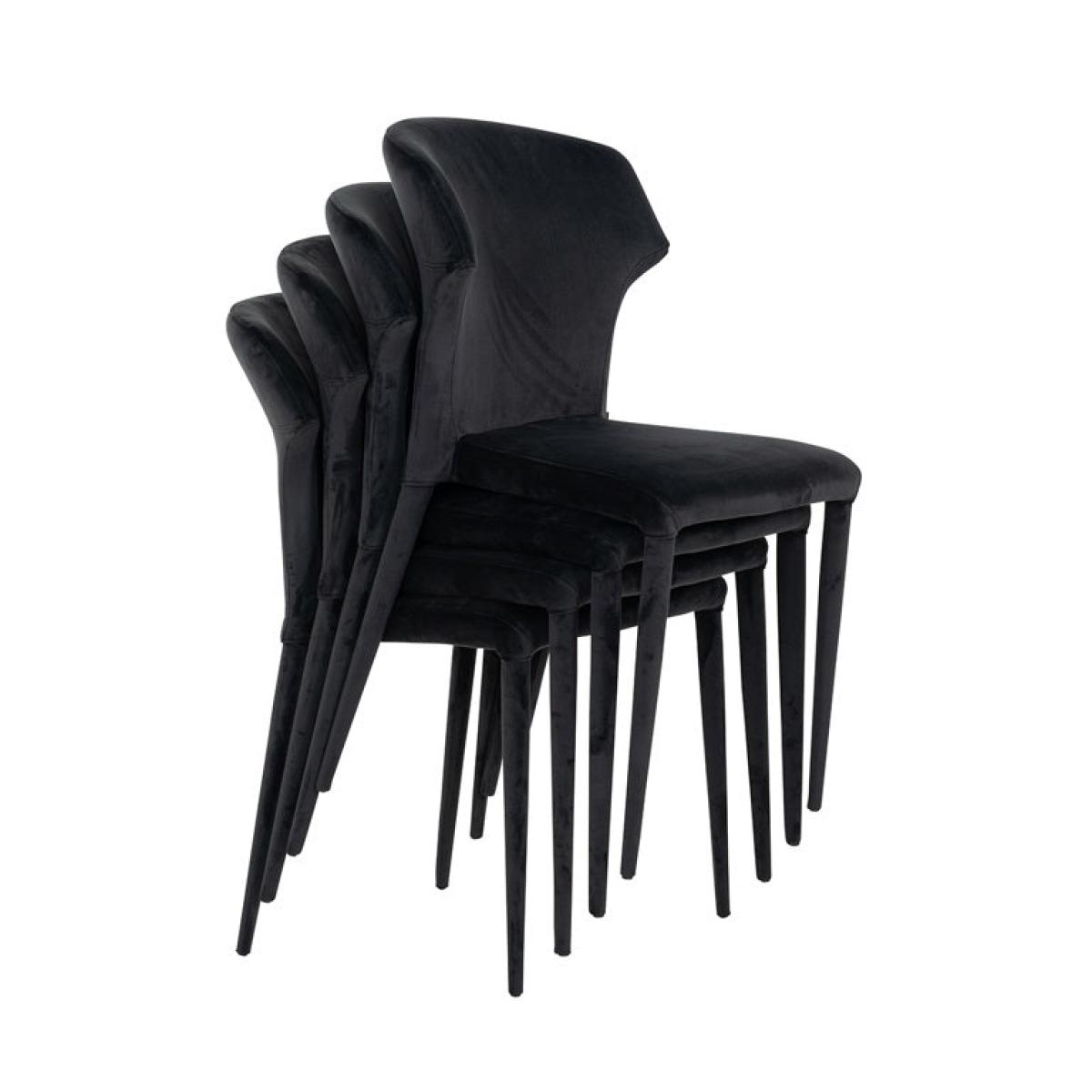 I love this chair for its sleek, contemporary look and rich velvet finish, which brings an air of sophistication to dining spaces. The dark antracite colour is incredibly versatile, working well in both modern and more classic interiors, especially when paired with light or neutral table settings to create a striking contrast. Practical styling tips include layering with textured tableware or adding colourful cushions to soften the visual impact. Its plush velvet not only offers comfort but also elevates the overall aesthetic, making it a statement piece that blends functionality with style. Perfect for those seeking a chic yet practical dining chair that will age beautifully over time.