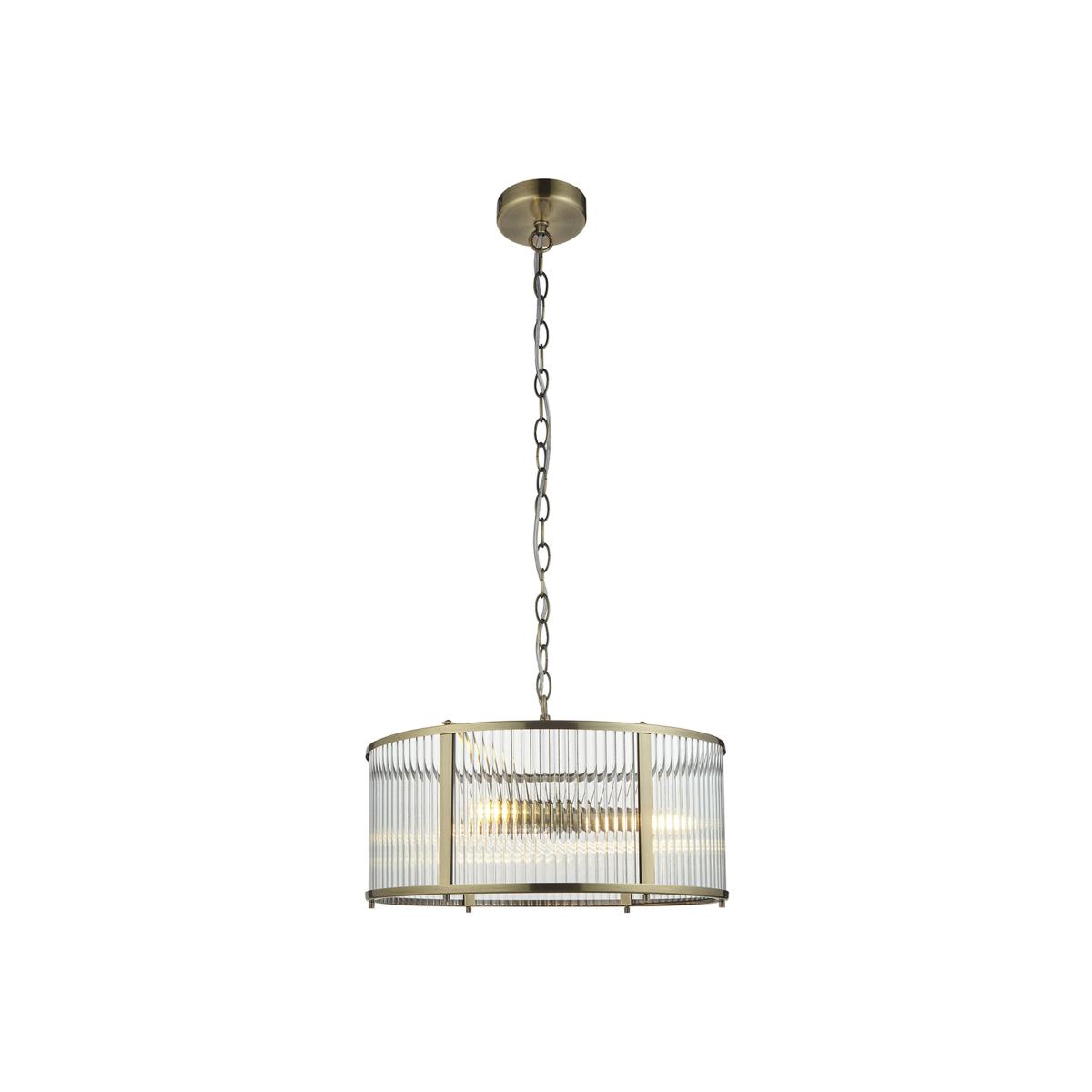 Richmond Ribbed Glass Three Light Pendant in Antique Brass