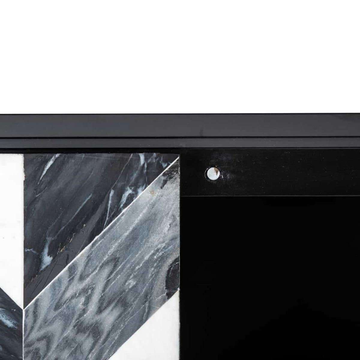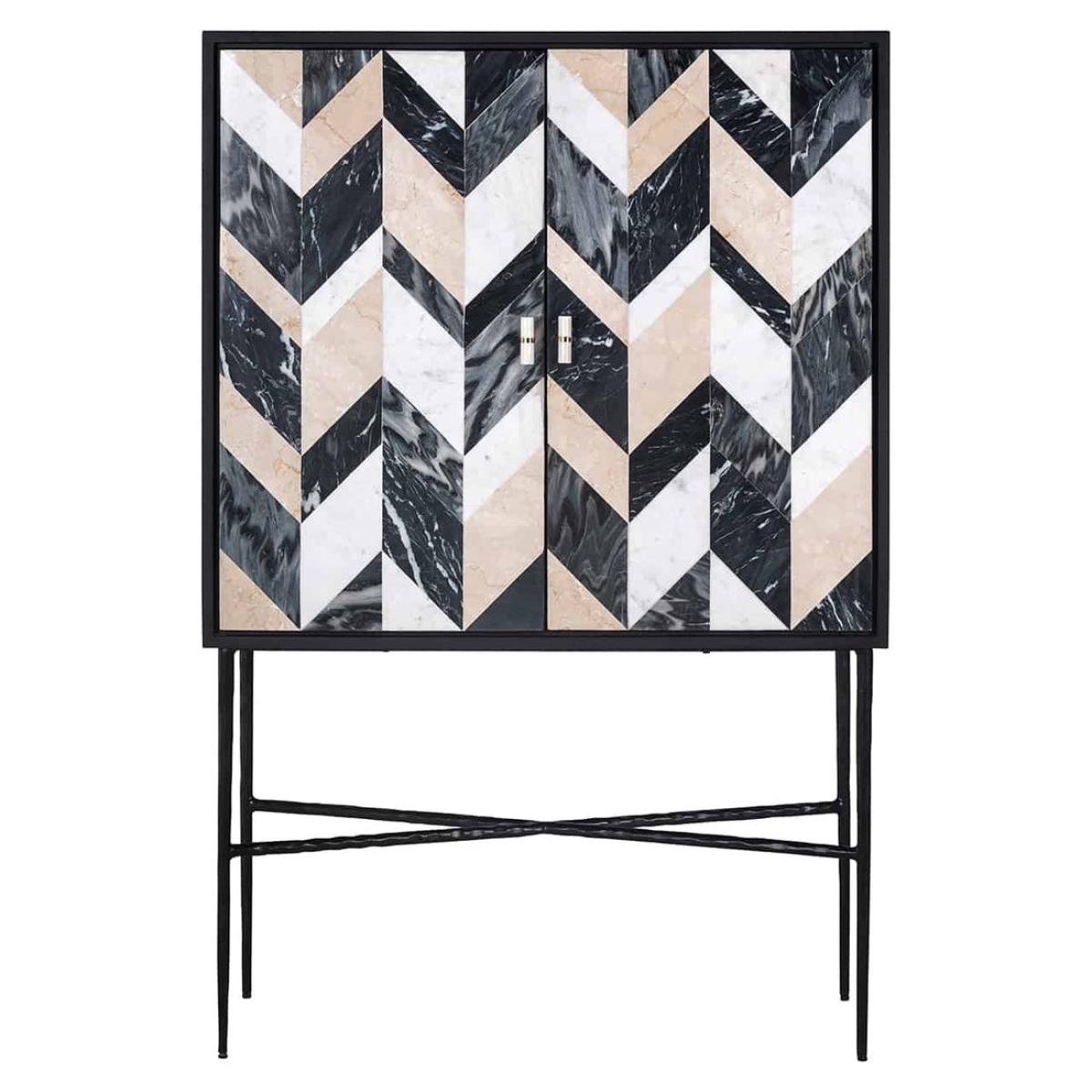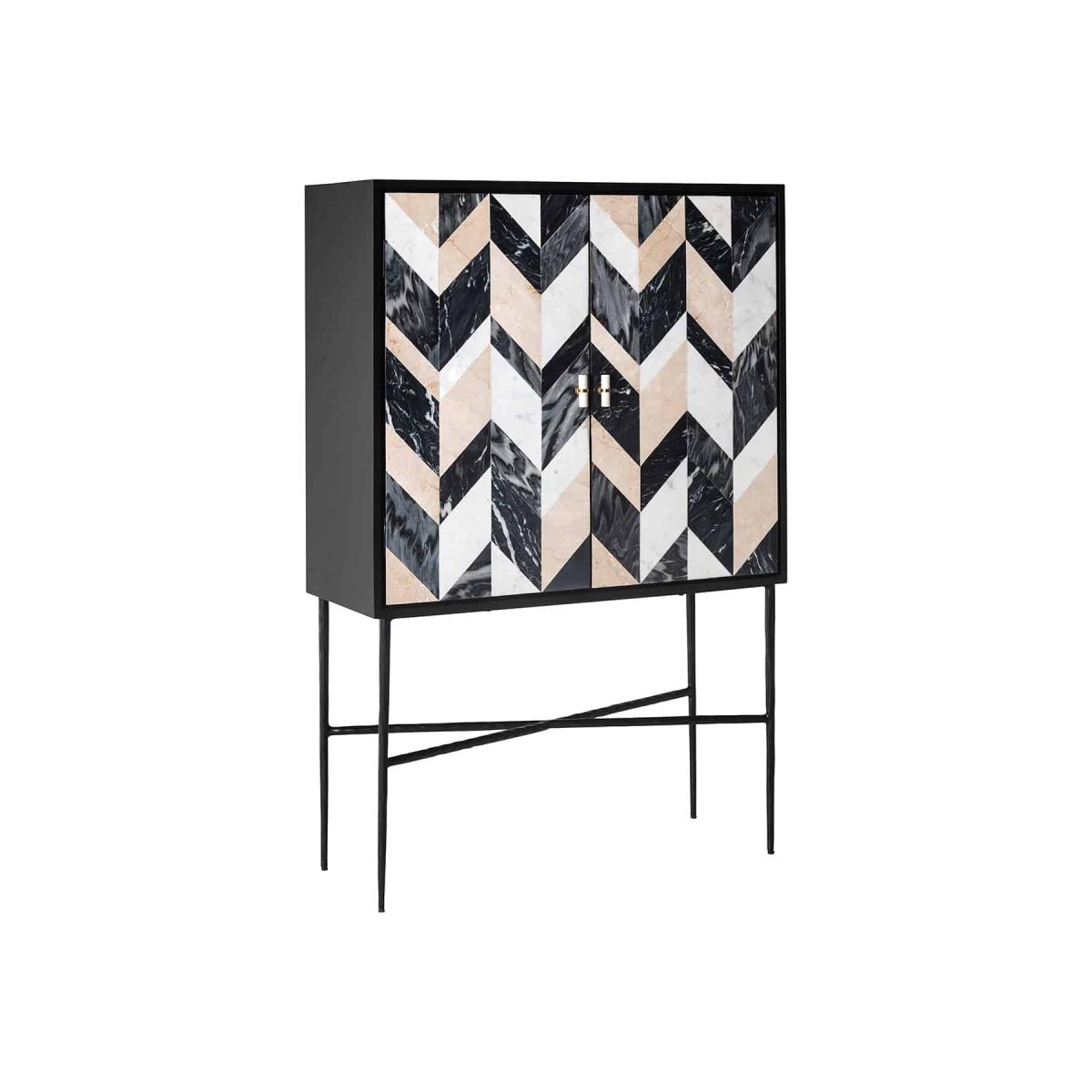 The sleek and modern design of the cabinet adds a touch of sophistication to your home decor, while also providing ample storage space for your possessions. The cabinet doors and handles are made of mango wood, giving the unit a natural and earthy feel. Dimensions: W:100 x H:150 x D:40cm Materials: Marble, Mdf, Mango, Iron Assembly Required: Yes Care Instructions:Wipe clean with soft damp cloth