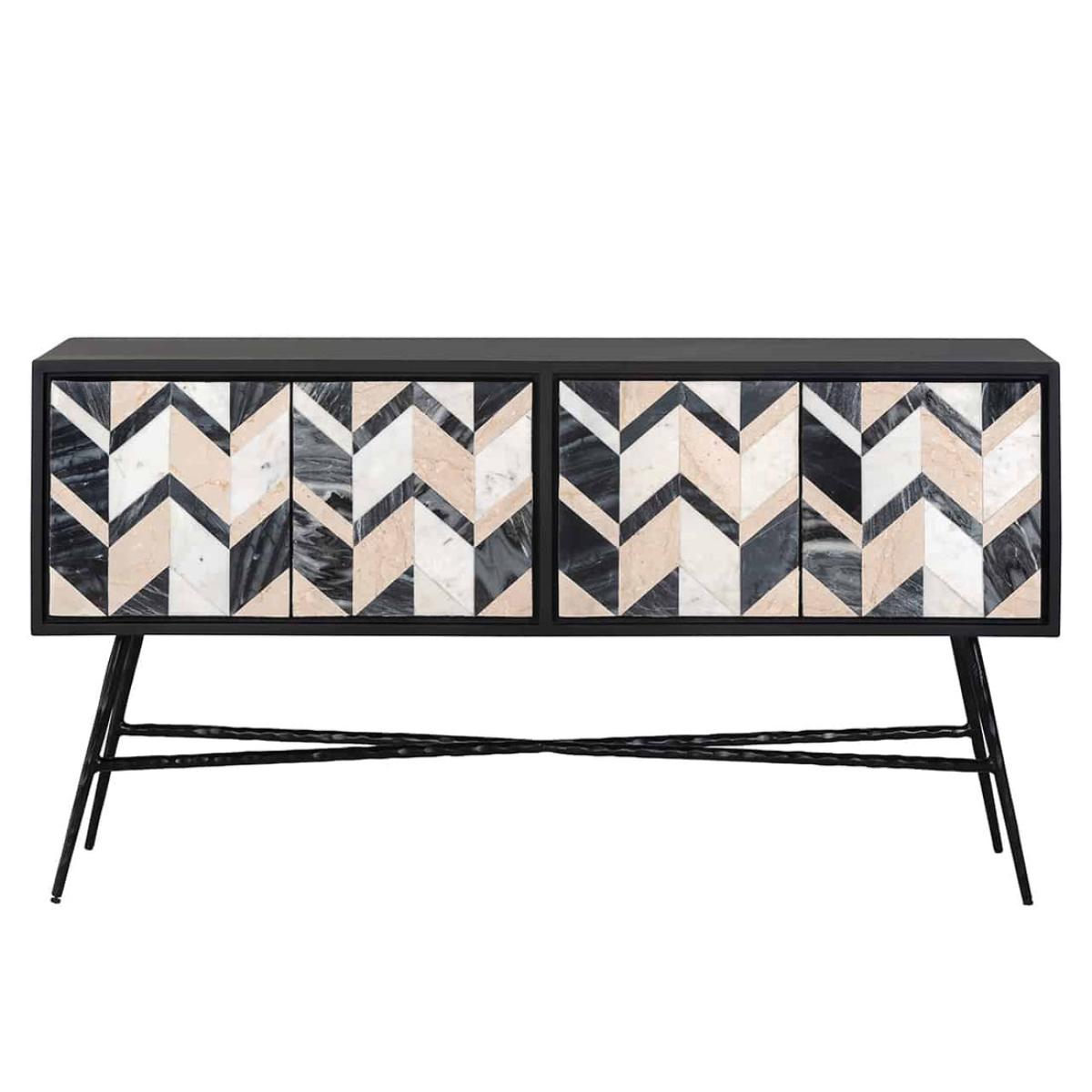 I love the Richmond Rostelli sideboard for its bold, geometric design that adds a contemporary touch to any space. Its striking chevron pattern and monochrome palette make it versatile enough to work well in both modern and eclectic interiors. This piece is perfect for balancing practicality with style - it’s great for storage in a dining room, living area, or even a hallway, and can be styled with decorative accessories like vases, statement lamps, or artwork on top to personalise it. To keep it looking fresh, try pairing it with neutral walls and surrounding textures like natural wood or metal accents, allowing the pattern to truly stand out. Its sleek frame and innovative pattern make it a statement piece that will elevate your home's aesthetic.