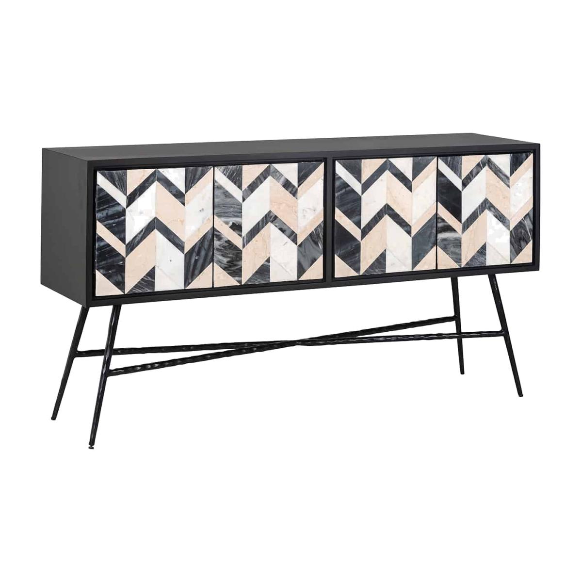 The Sideboard Rostelli 4-doors is a stylish and practical storage solution that will elevate the look of any living space. Dimensions: W:150 x H:80 x D:40cm Materials: Marble, Mango, Mdf, Iron Assembly Required: Yes Care Instructions:Wipe clean with soft damp cloth