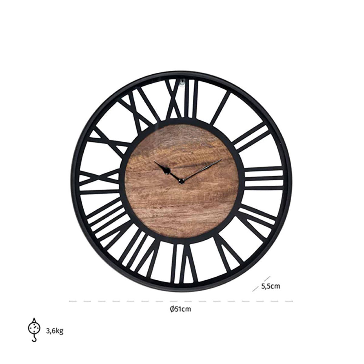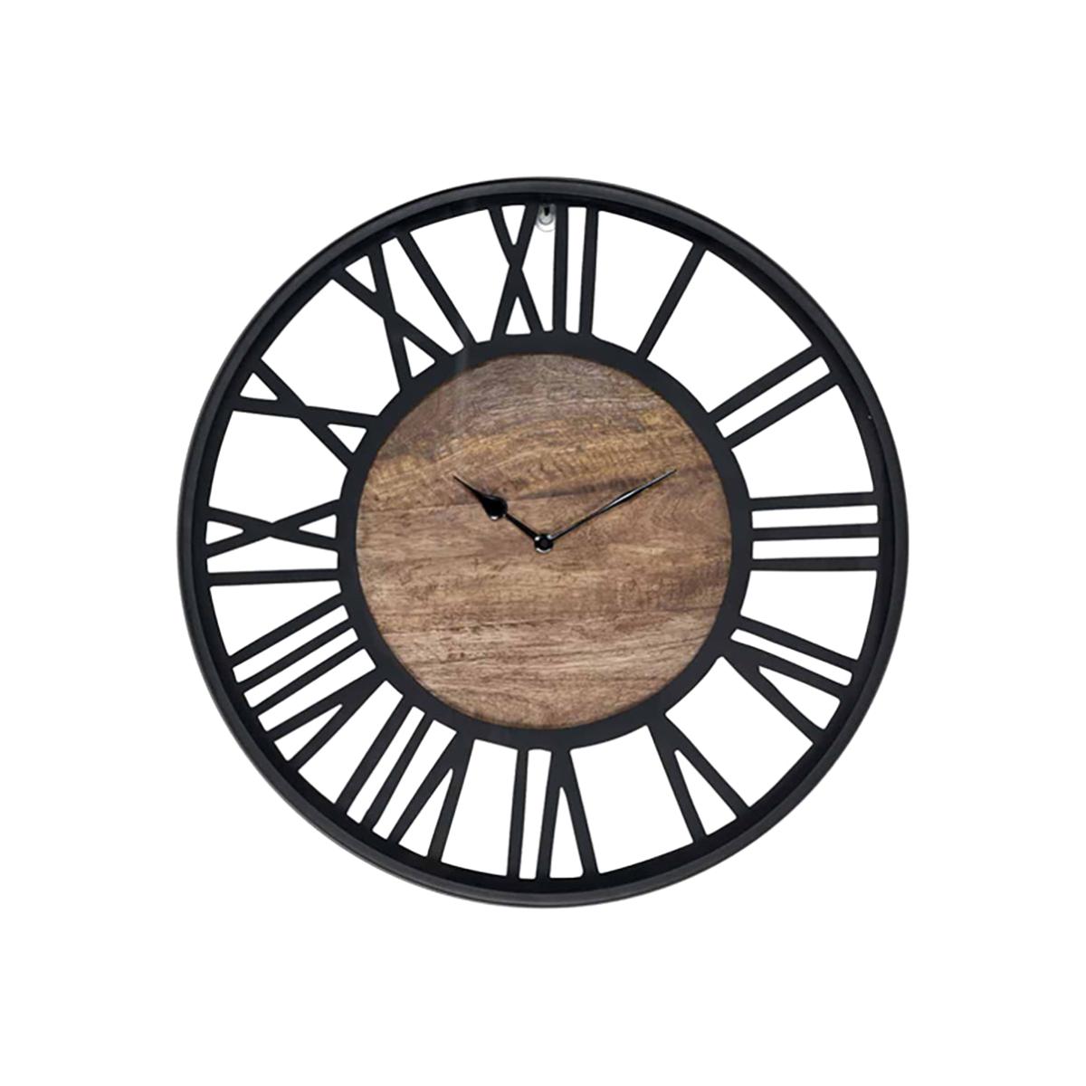 Enhance the elegance of any room in no time at all with the Richmond Scott black wall clock. Scott's beautifully understated wood grain finish boasts a sedately natural beauty that contrasts confidently with its precision cut-out roman numerals and the perfectly sculpted hands that sweep across its face. This sophisticated piece has a classical beauty which makes it the perfect companion to any style or colour of décor, looking sublime on the wall of any contemporary home. Measuring 60cm in height, 50cm in width and 5cm in depth, the Richmond Scott wall clock will have you watching the time pass in style. Dimensions: H: 60 x W: 50 x D: 5 cm. Weight: 5.3kg Materials: Mango, Metal Assembly Required: No