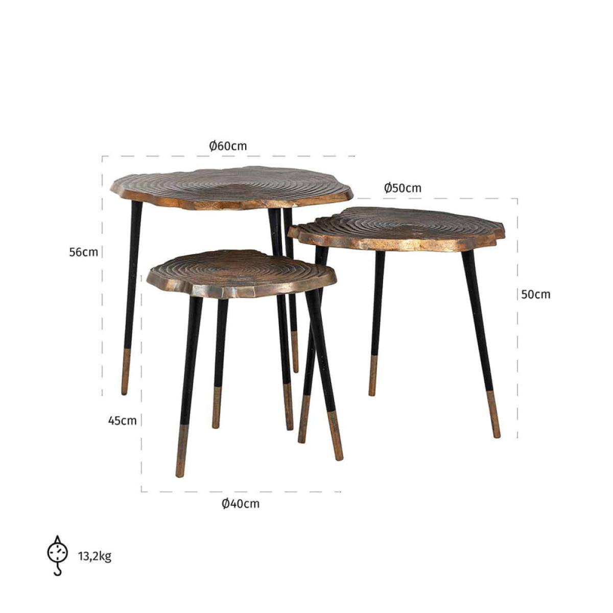 Combine modern art with rustic interior design in this stunning Richmond Sherman nest of tables. The three tables in ascending sizes have an intricately carved aluminium top that imitates a natural wooden tree effect. The iron legs in black and gold finish create that final touch of luxury. You can either nestle these three tables together harmoniously or use them separately as handy side tables next to a sofa, chair or bed. These tables might be small, but what they lack in size they make up for in style and convenience. The perfect addition to any modern or traditional interior. *Moot Trading Ltd is not a lender and acts only as an introducer. The credit product is provided by Klarna Bank AB (publ). Credit is only available to permanent UK residents aged 18 and over, subject to status. Terms and conditions apply. Please note that the following products are not regulated by the FCA: Pay in 30 days and Pay in 3 instalments. Read More.