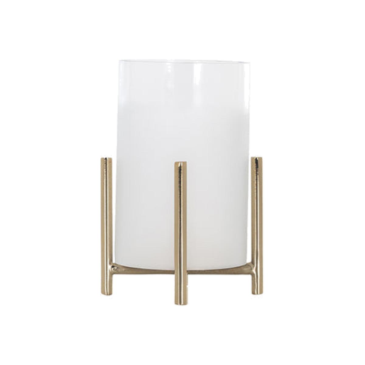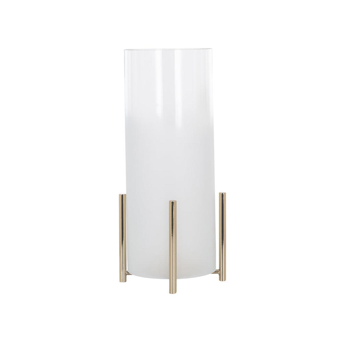 The modern, clean and crisp lines of this Eva Hurricane lamp from Richmond are a striking addition to your lighting collection. The frosted glass shade sits elegantly in the raised iron base ensuring that the Eva Hurricane can be placed either inside or outside your beautiful home. At a diminutive 14.5 x 8 x 8 cm the lamp can be placed alone or with others to add atmosphere to a cosy evening with friends or provide a warm light as you enjoy a summer’s evening after dark, beautifully illuminating your space whilst ensuring that the flame of the candle is protected Dimensions: H: 14.5 x W: 8 x D: 8 cm Materials: Glass, Iron Assembly Required: No Care Instructions:Wipe with a clean, dry cloth