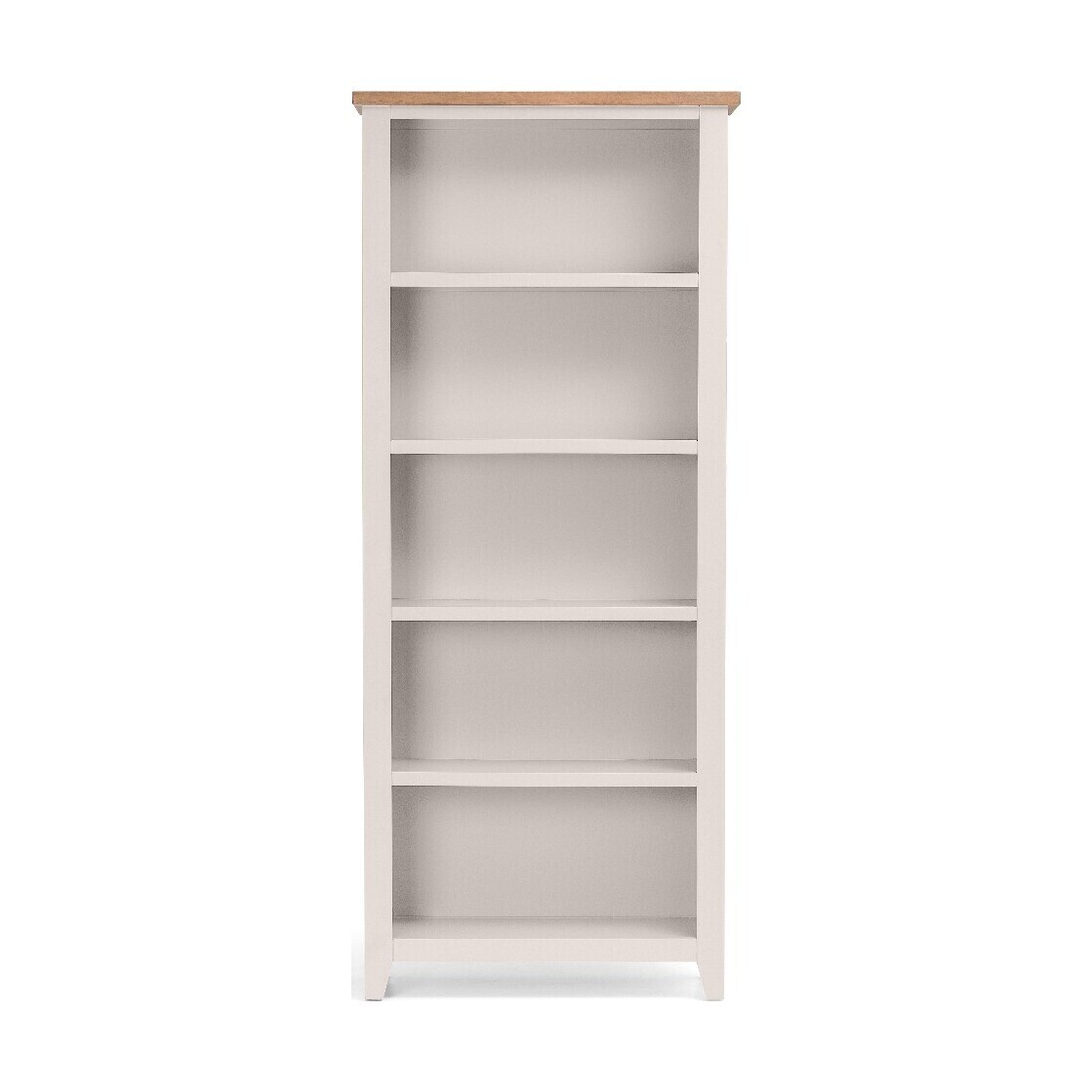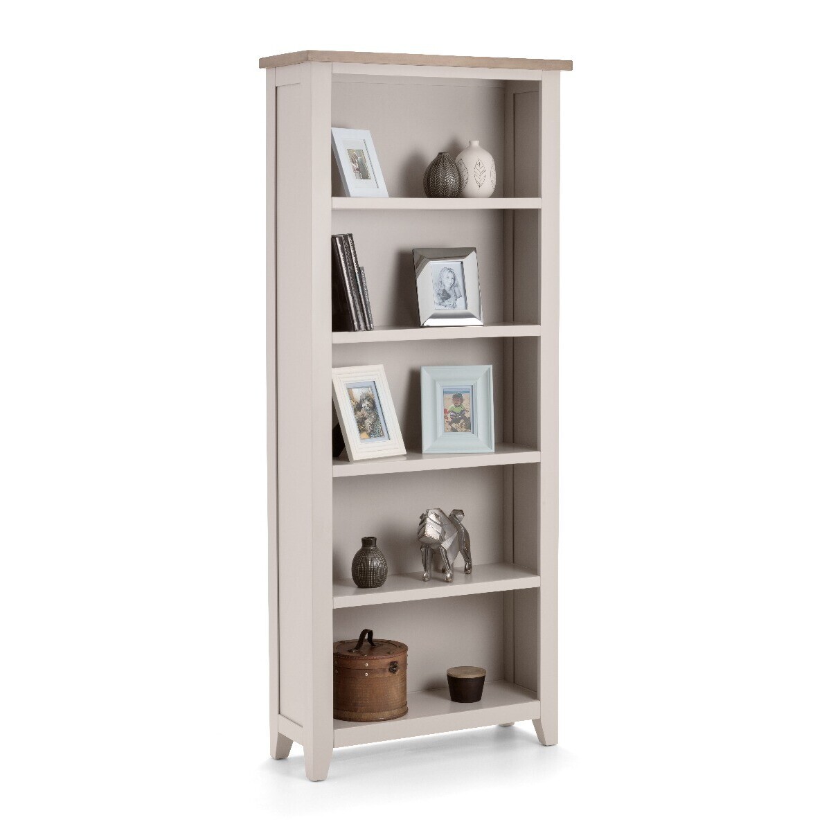 The Richmond Tall Bookcase is an elegant and homely option for storing all your reading materials or using to display photographs and more. In keeping with the wider Richmond Collection, it features an elegant painted finish and a pale oak top. With five spacious shelves there is considerable space for storage. Each shelf holds up to A4 box file size in height. Crafted from high quality white oak and oak veneers. Elegant elephant grey painted finish. Coordinates perfectly with the extensive Richmond Collection by Julian Bowen.