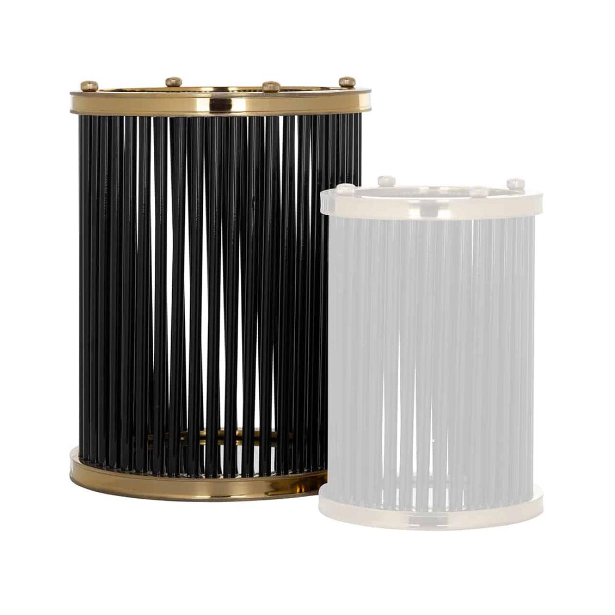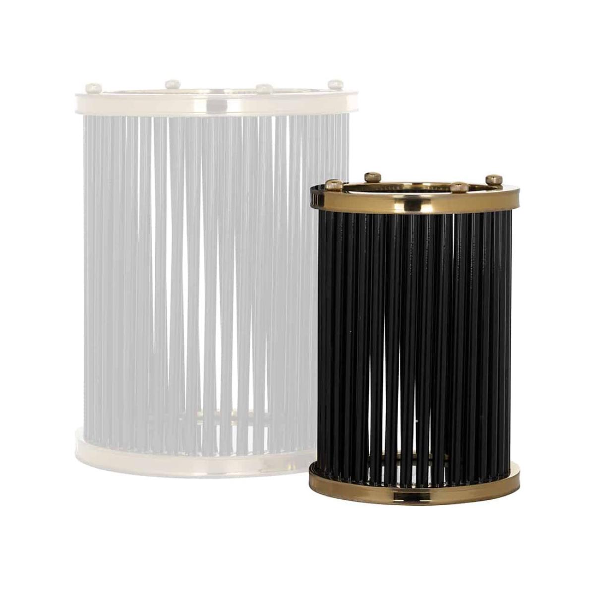 The Windlicht Tygo Klein Black is a beautifully crafted candle holder that brings warmth and coziness to any space. The glass enclosure keeps the flame of the candle protected from drafts. Dimensions:Small: W:23 x H:33.5 x D:23cm Large: W:33 x H:44 x D:33cm Materials: Aluminium, Glass Assembly Required: No Care Instructions:Wipe clean with soft damp cloth