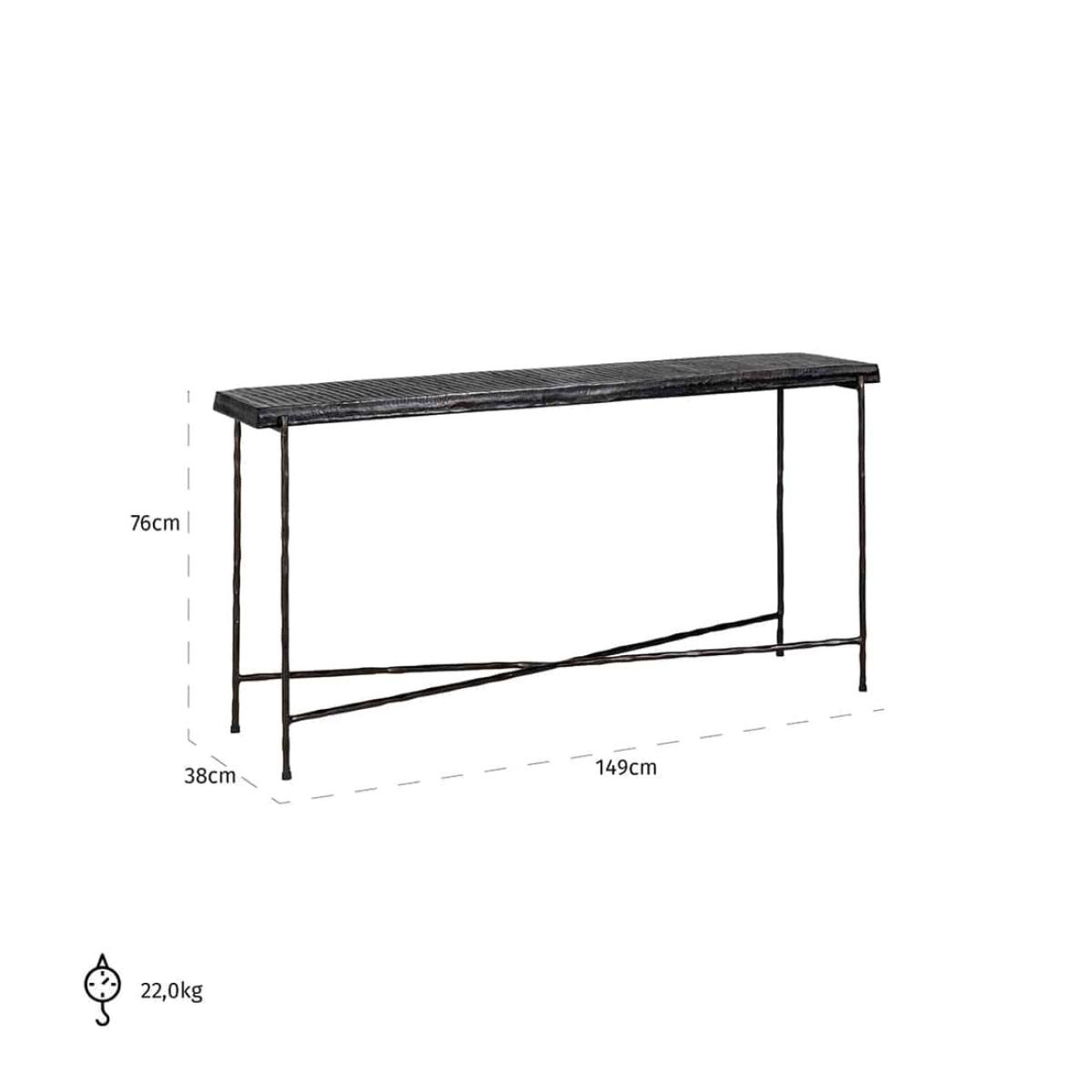 Elevate the aesthetic of your space with the stunning Console Ventana. Boasting an exquisite design that exudes elegance and sophistication, this console is a perfect addition to any modern interior. The Console Ventana is not just a beautiful addition to your space, but an intelligently designed one too. Dimensions:W:149 x H:76 x D:38cm Materials: Aluminium, Iron Assembly Required:Yes Care Instructions:Wipe clean with soft damp cloth