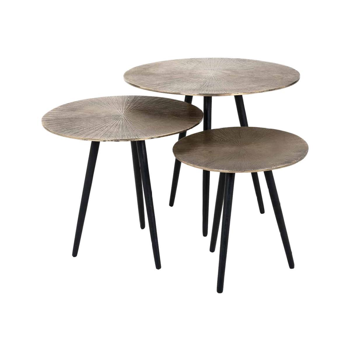 Enhance your space with this set of three Richmond Vittorio coffee tables, adding practicality and panache to any room. The Vittorio set boasts beautifully textured and lustrous champagne gold tops set against black legs, bringing durability and beauty together in the most enticing way. The Vittorio tables are perfect for entertaining or peaceful alone time, providing a sophisticated place to rest a coffee or glass of wine. Measuring 40cm, 35cm and 30cm in height, 48cm, 40cm and 32cm in width and 48cm, 40cm and 32cm in depth, this set of three coffee tables will make a stylish and cosy addition to your living space. *Moot Trading Ltd is not a lender and acts only as an introducer. The credit product is provided by Klarna Bank AB (publ). Credit is only available to permanent UK residents aged 18 and over, subject to status. Terms and conditions apply. Please note that the following products are not regulated by the FCA: Pay in 30 days and Pay in 3 instalments. Read More.