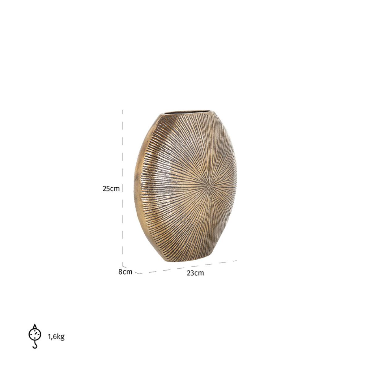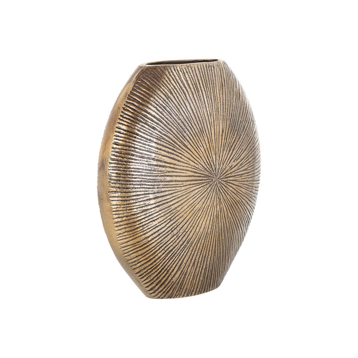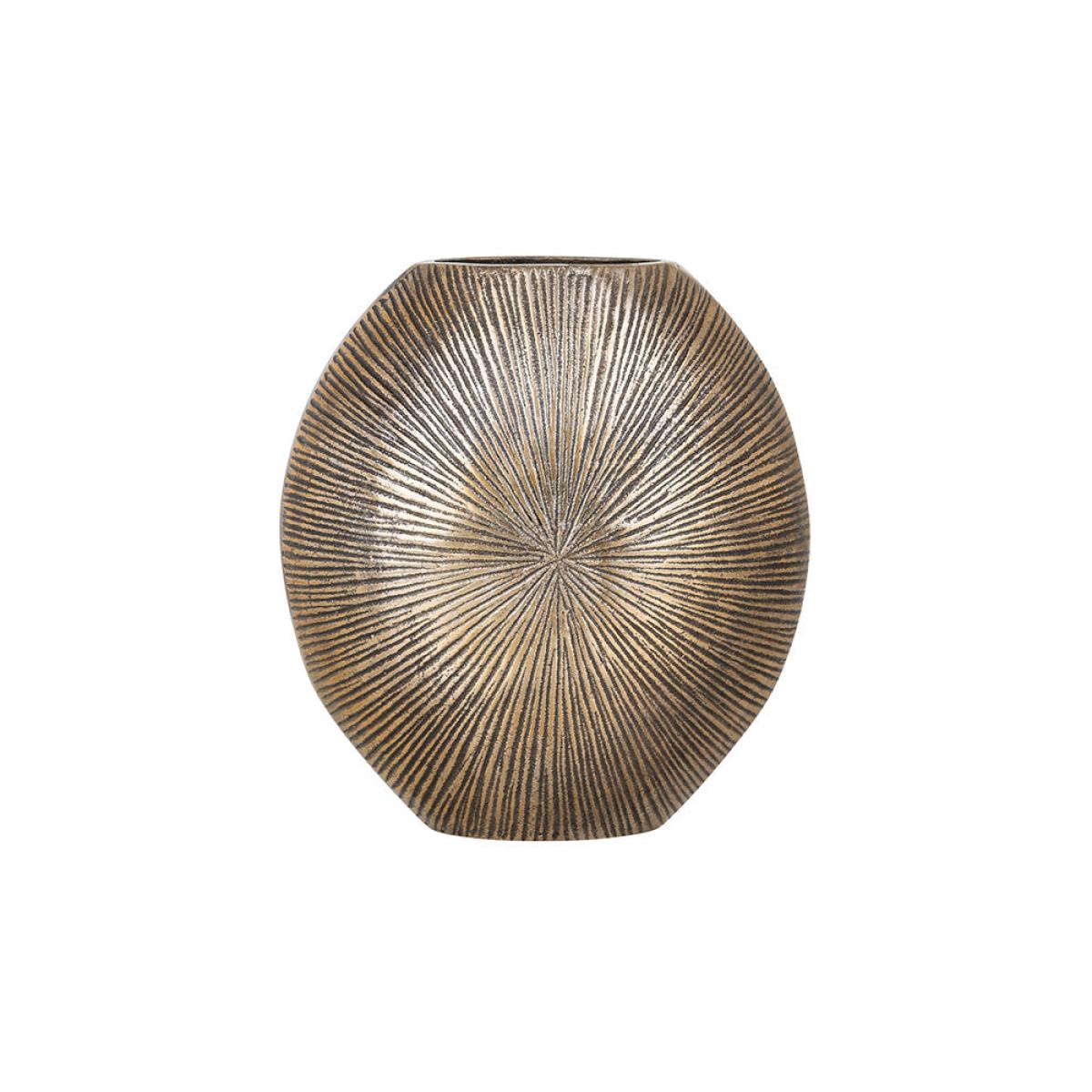 Everyone loves a bunch of flowers but it's even better if the vase you use is also a thing of beauty in its own right. The Richmond Zaya vase is stunning displayed on its own, and will only complement your blooms, whether they are real or dried. In a versatile and attractive gold coloured brushed aluminium, this vase is a great size for displaying delicate flowers of any colour. It will work well with various home décor schemes, you will only have the problem of deciding where to place it. Dimensions: Small - H: 25 x W: 23 x D: 8 cm Large - H: 28.5 x W: 29.5 x D: 9 cm Materials: Aluminium Assembly Required: No Care Instructions:Wipe with a clean, dry cloth