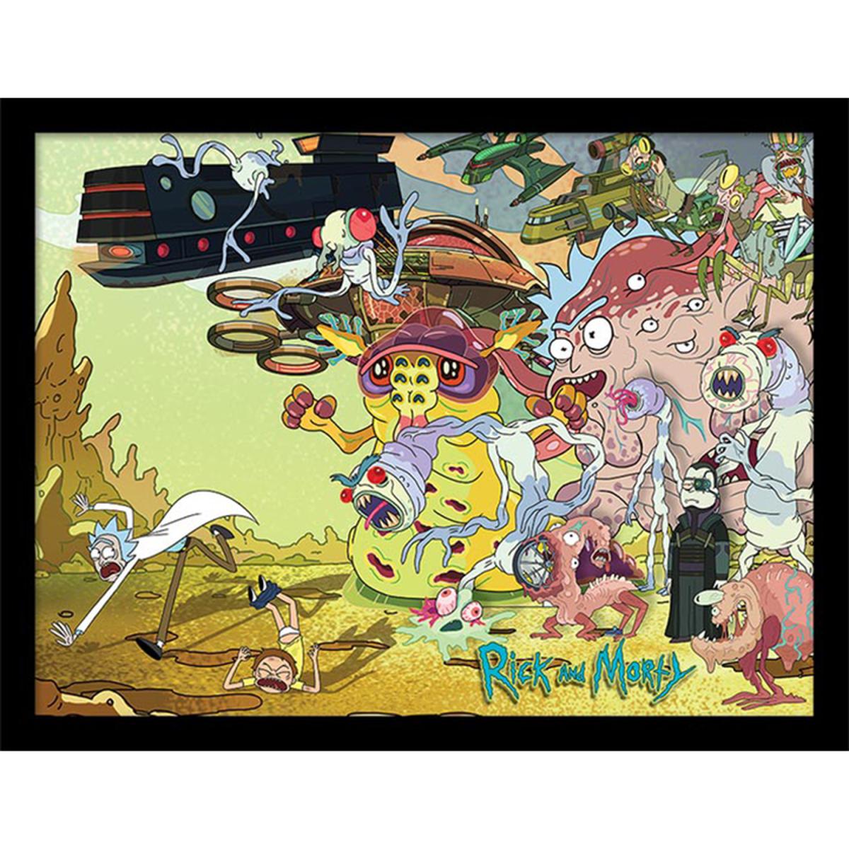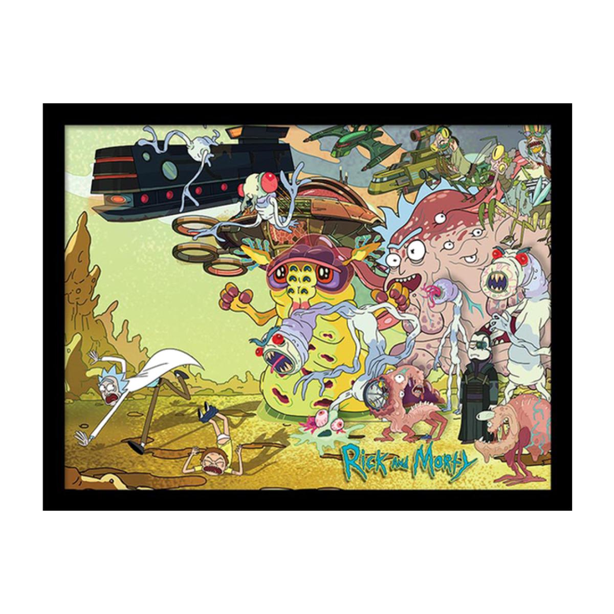 30x40cm Framed Print, in elegant black MDF frame with hanging fixings on the back for displaying this great Rick and Morty print anywhere around your home.