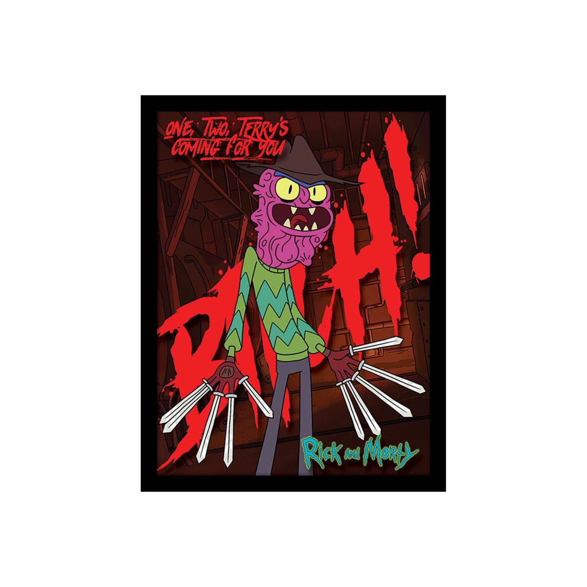 30x40cm Framed Print, in elegant black MDF frame with hanging fixings on the back for displaying this great Rick and Morty print anywhere around your home.