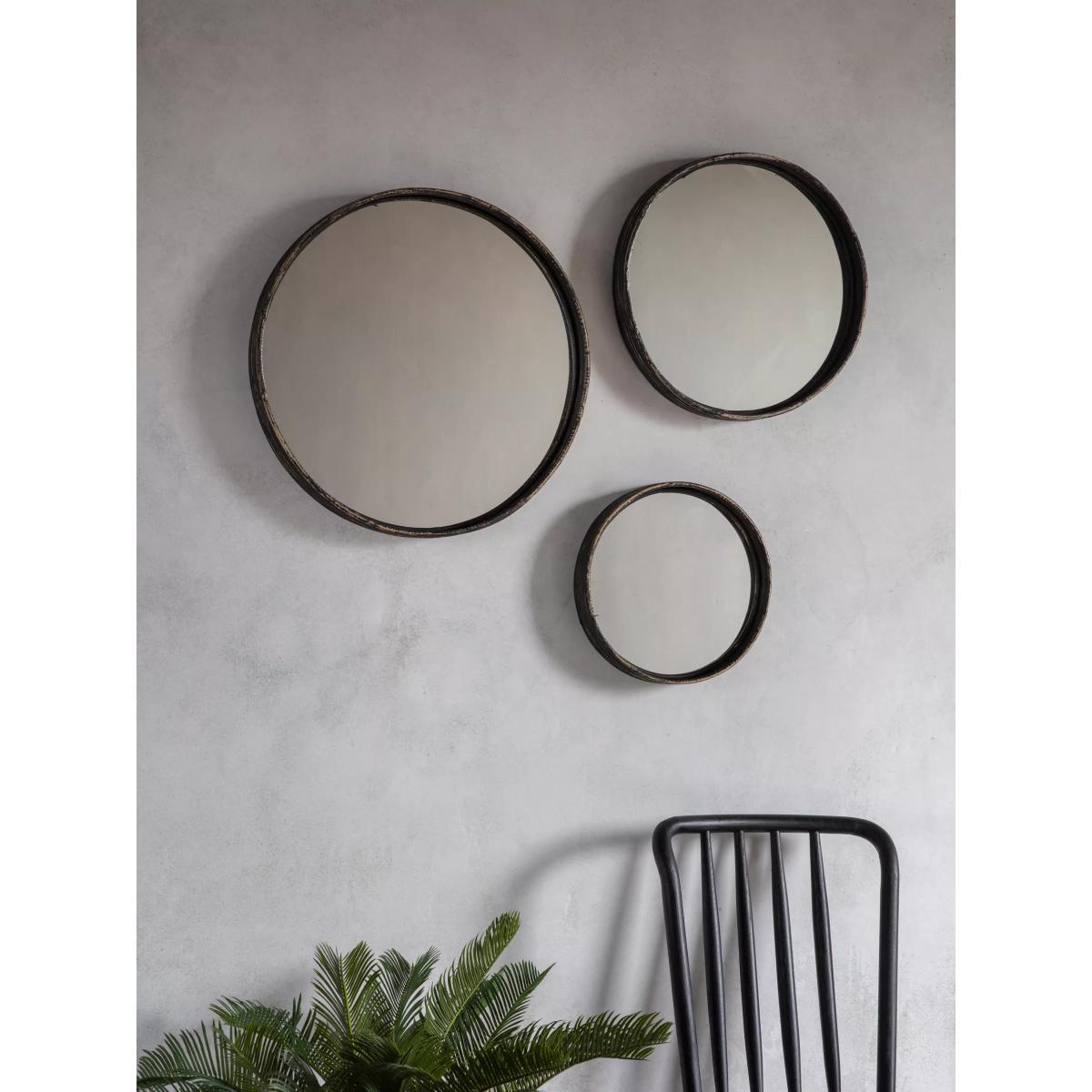 A set of three Rico mirrors with on-trend rattan frames surrounding the round glass. Wall mount them separately to theme your home or together as a wall décor feature. Have you thought about wall ?