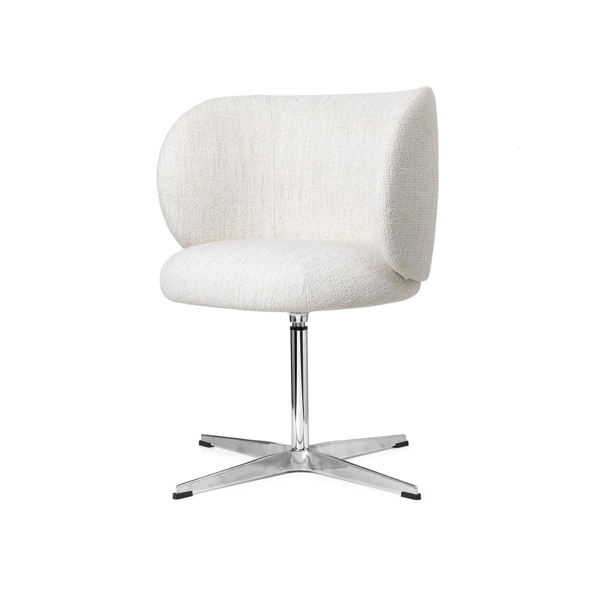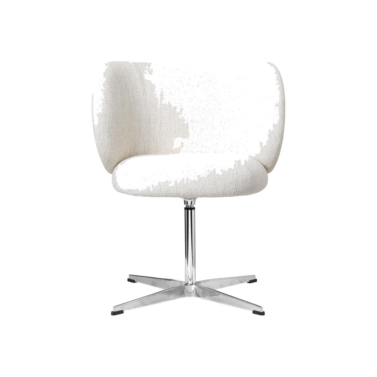 Rico is a sculptural, swivel armchair with soft, curved lines. Its wide seat, characterised by soft yet generous lines, is comfortable and inviting while its enveloping XXL back rest offers a significant amount of support. Its curved shape, thick bouclé fabric and high-quality details are integral to the design of the Rico chair. This armchair, which features a practical swivel base, is perfect for an office or as a dining chair. We love the rich, warm texture of the bouclé fabric. This soft fabric became famous when the fashion icon, Coco Chanel, used it to make a jacket.