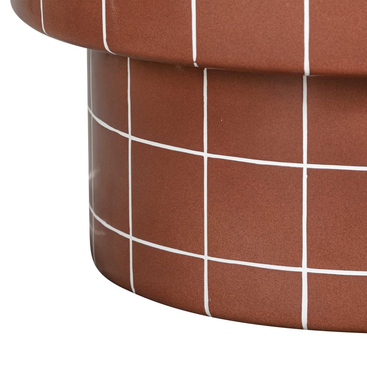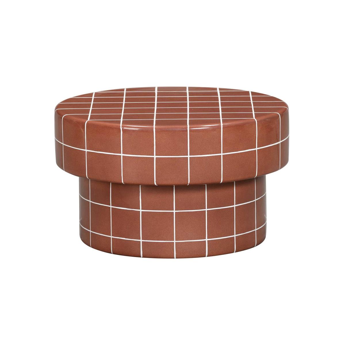I love this round garden coffee table for its bold pop of colour and playful design, which makes it a fantastic statement piece for outdoor seating areas. Its terracotta hue and grid pattern give it a relaxed yet contemporary vibe, making it versatile enough to work in both modern and bohemian gardens. It’s particularly well-suited to informal spaces, patios, or even small courtyards where a colourful focal point can inject personality. Practical styling tips include pairing it with neutral outdoor sofas or adding vibrant cushions and throws for a layered look. To keep it looking its best, consider placing it on a protective mat if exposed to harsh weather, and it works well with a mix of textured materials like wicker, rattan, or metal for a curated, inviting outdoor setting.