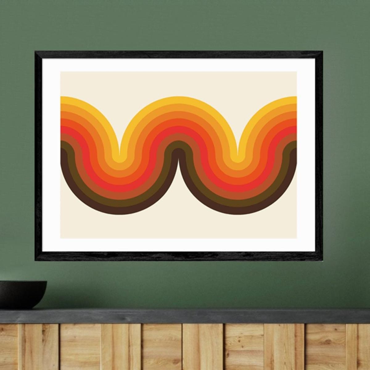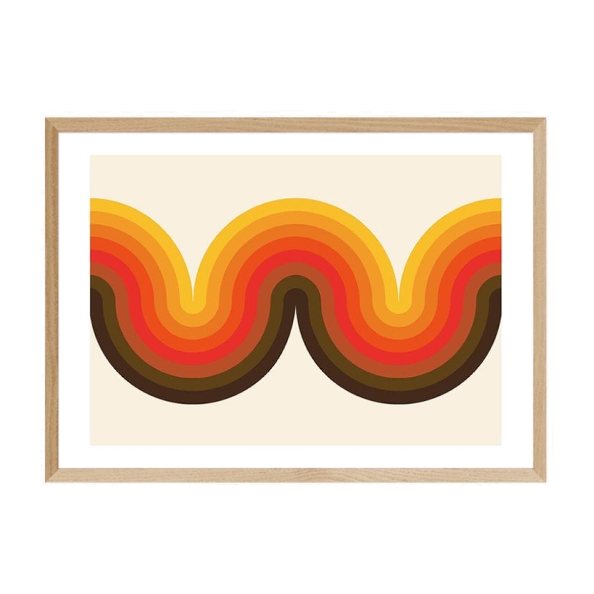 Bringing the best aspects of 1970s inspired design into your home, the Ride The Wave Graphic Art Print features those classic vintage colours in a simple yet eye-catching design. Add some retro cool design to your walls. Only giclée printing processes are used for this print resulting in the highest quality museum-level colours and sharpness. Choose between a number of different coloured frames and three sizes for the perfect print for your space.