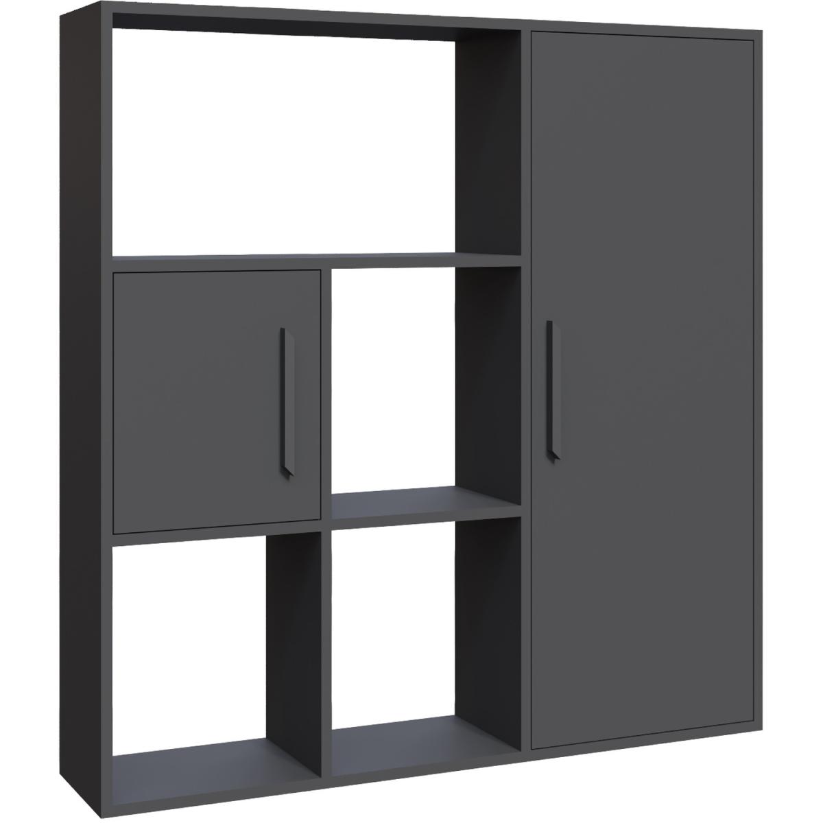 Ridge 124 cm tall modern bookcase has a unusual design. The bookcase with 4 open shelves and 2 cabinets add your home a modern look. The bookcase provides storage space for your books, CDs, and accessories, while creating space with its modern design that you can use in every room of your home. Bookcase is made of 18mm thick melamine veneer particle board and banded with PVC edge band. It is manufactured using eco-friendly and health-friendly materials. The product will be delivered to the customer in the original package as disassembled. It is designed to be assembled by the customer using a power drill. Assembly instruction and installation hardware are included in the package. For fast and error-free installation, product parts are numbered with stickers following the assembly guide.