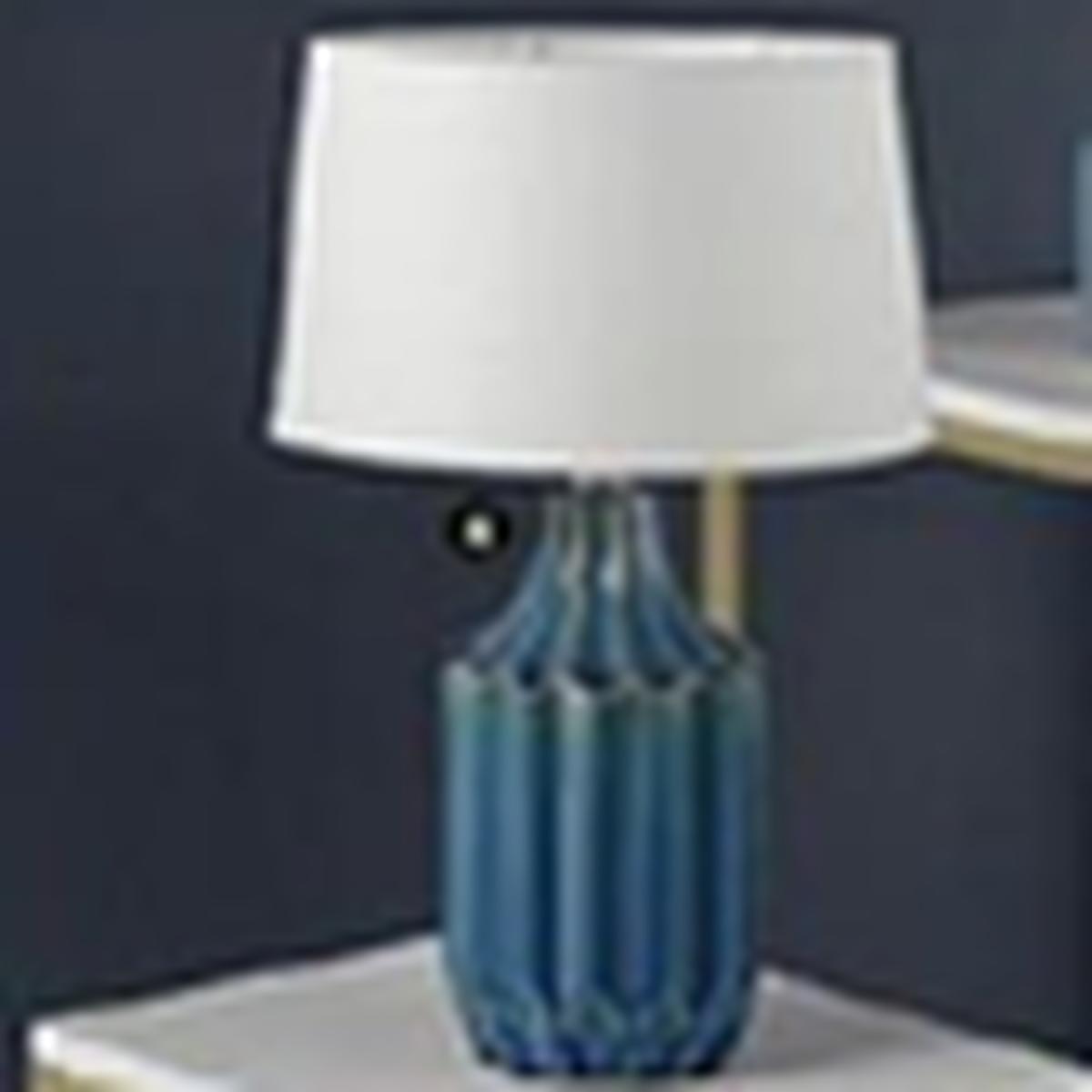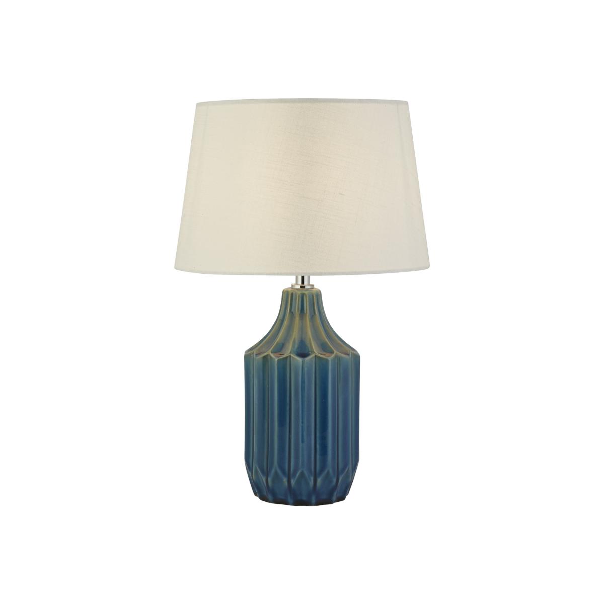 Add an instant pop of colour to any living or bedroom with this stylish table lamp. With a modern textured ceramic base in a bold blue colour way, topped with a contrasting white fabric shade, this lamp will add a contemporary look to any room.