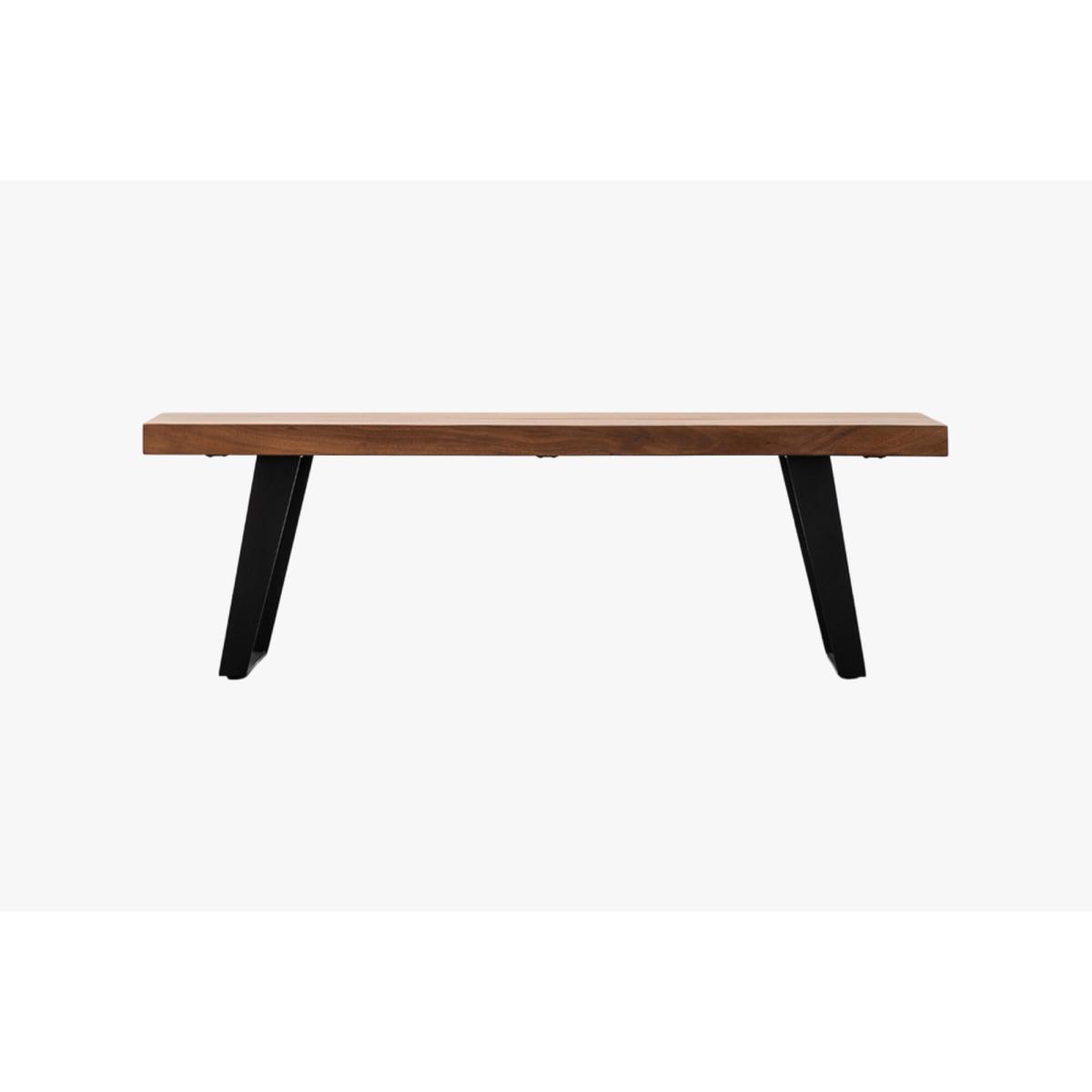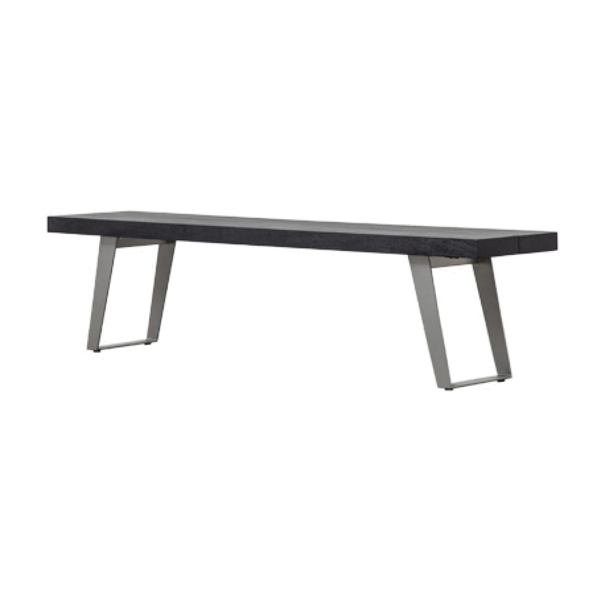 Pull up a seat in style with the stunningly modern Ridgewood dining bench. With a wood plank seat and minimalist angled legs this bench has a lot to say. Use with the Ridgewood dining table for the boldest statement you can make.