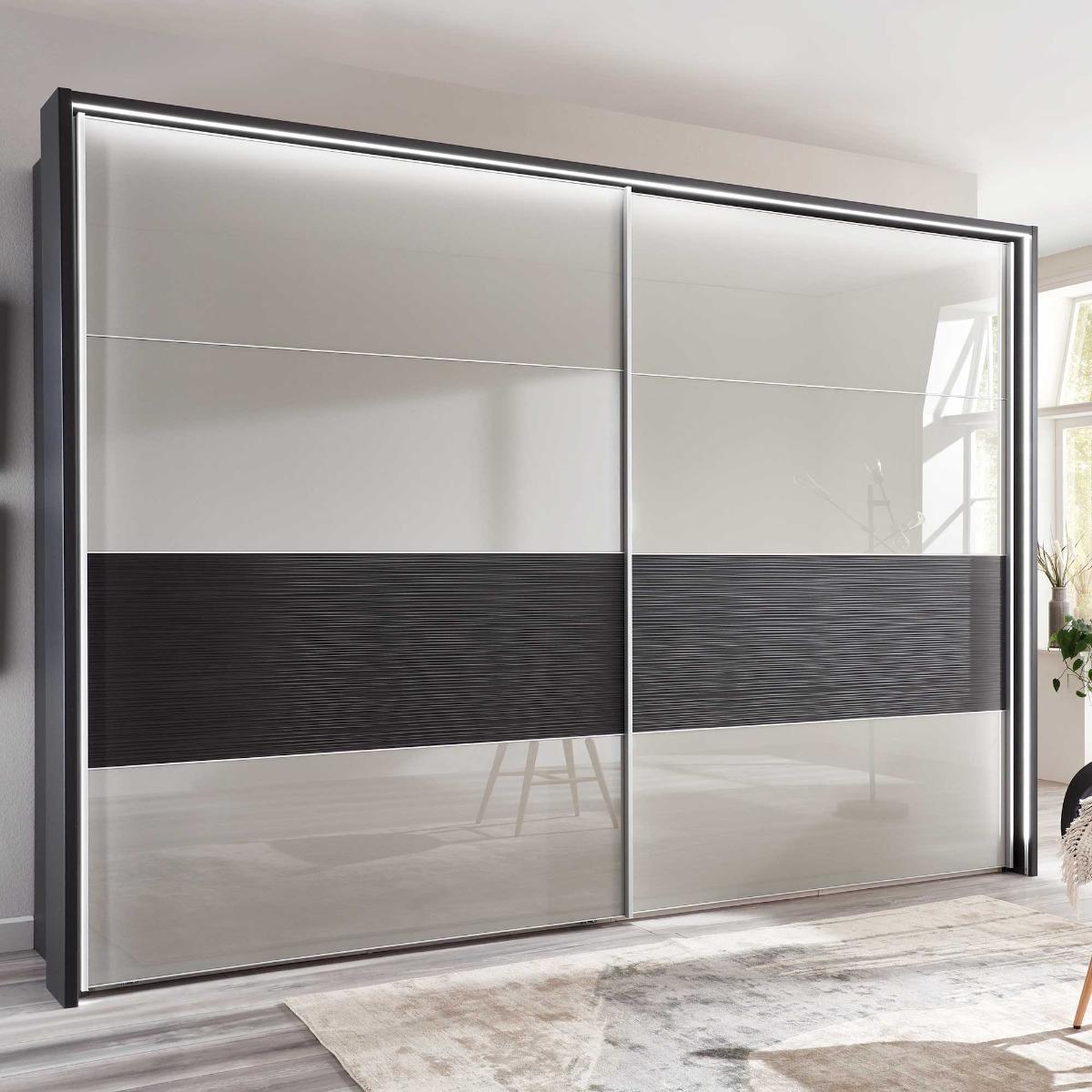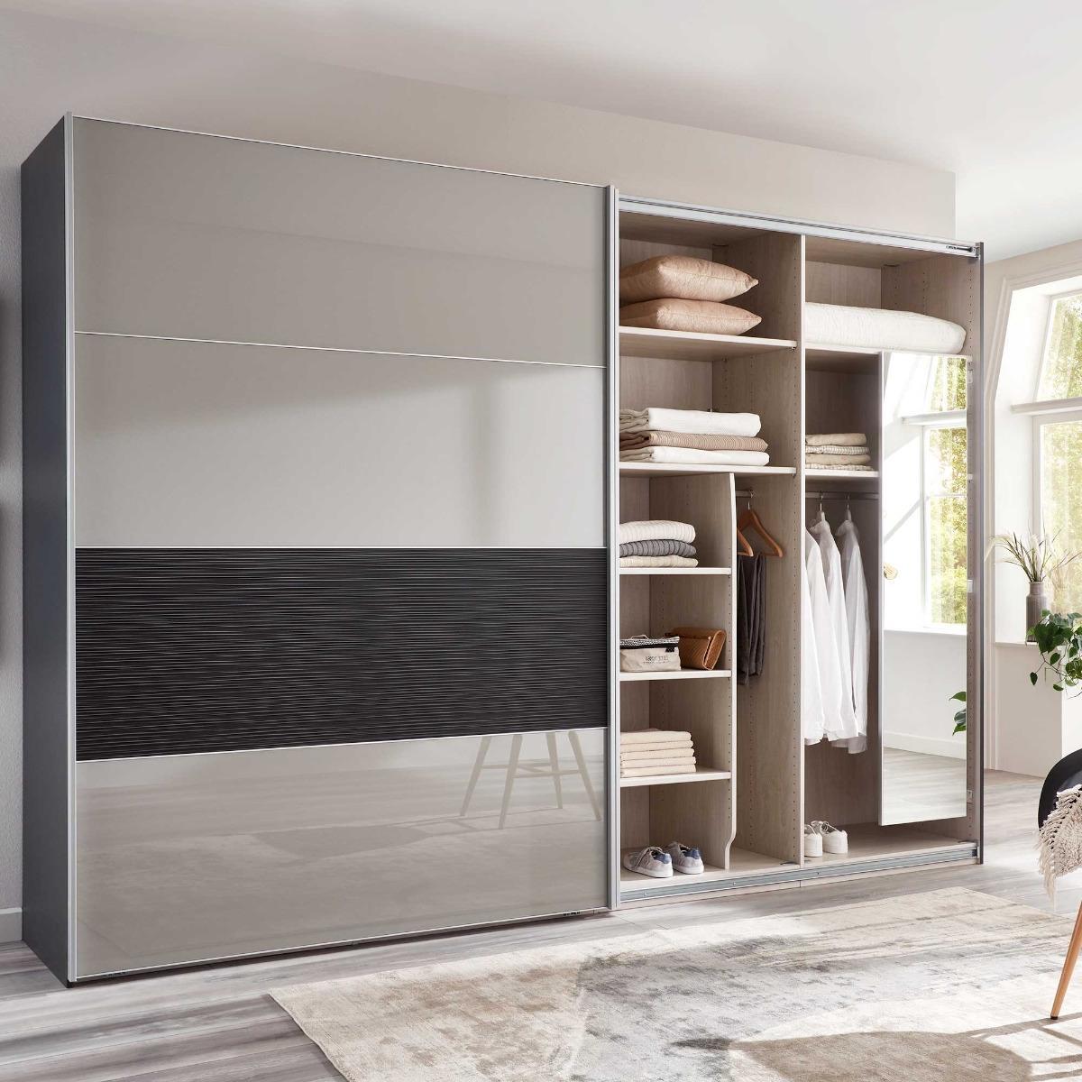 Riga 2 Door Sliding Wardrobe, Pebble Glass and Structure Graphite